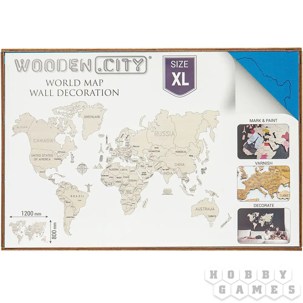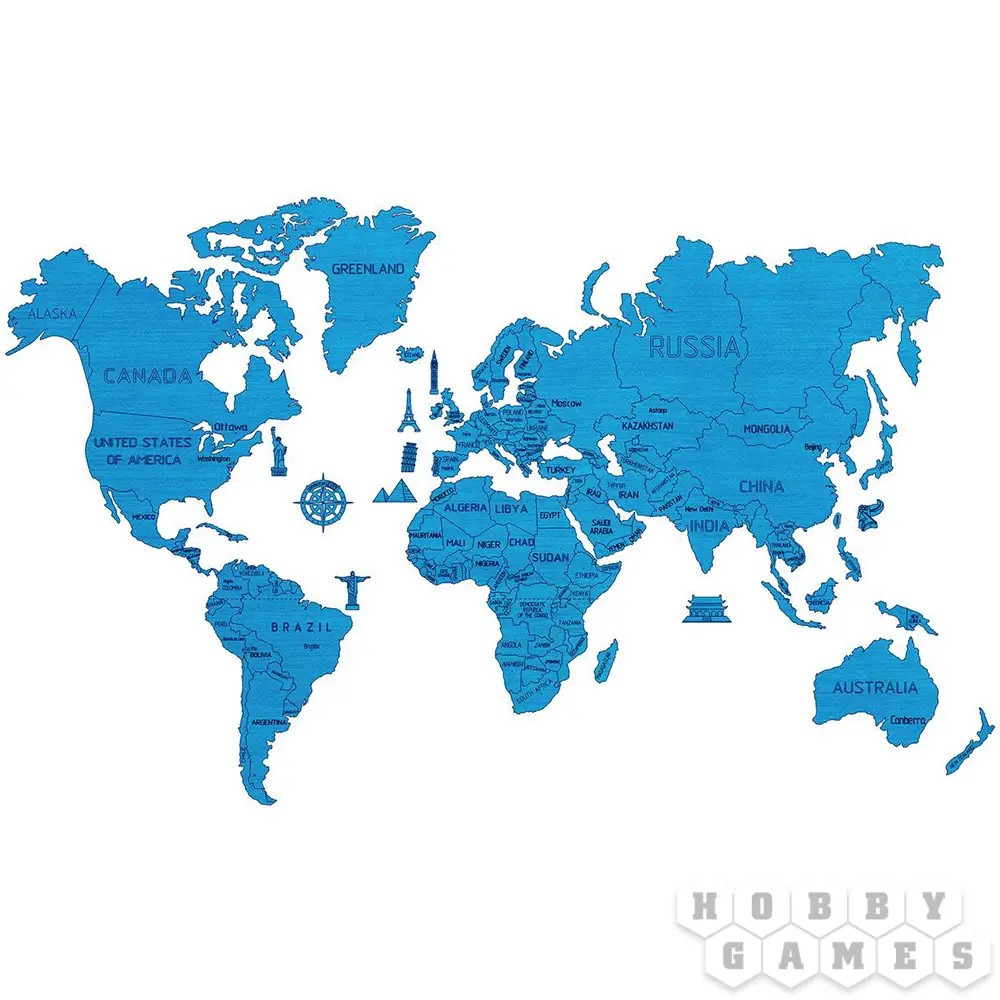 Раскрасьте карту по своему вкусу и отметьте историю своих путешествий. Деревянная карта мира изготовлена из экологически чистых материалов, легко собирается и крепится на стену с помощью двухстороннего скотча. Сборка не требует использования клея.