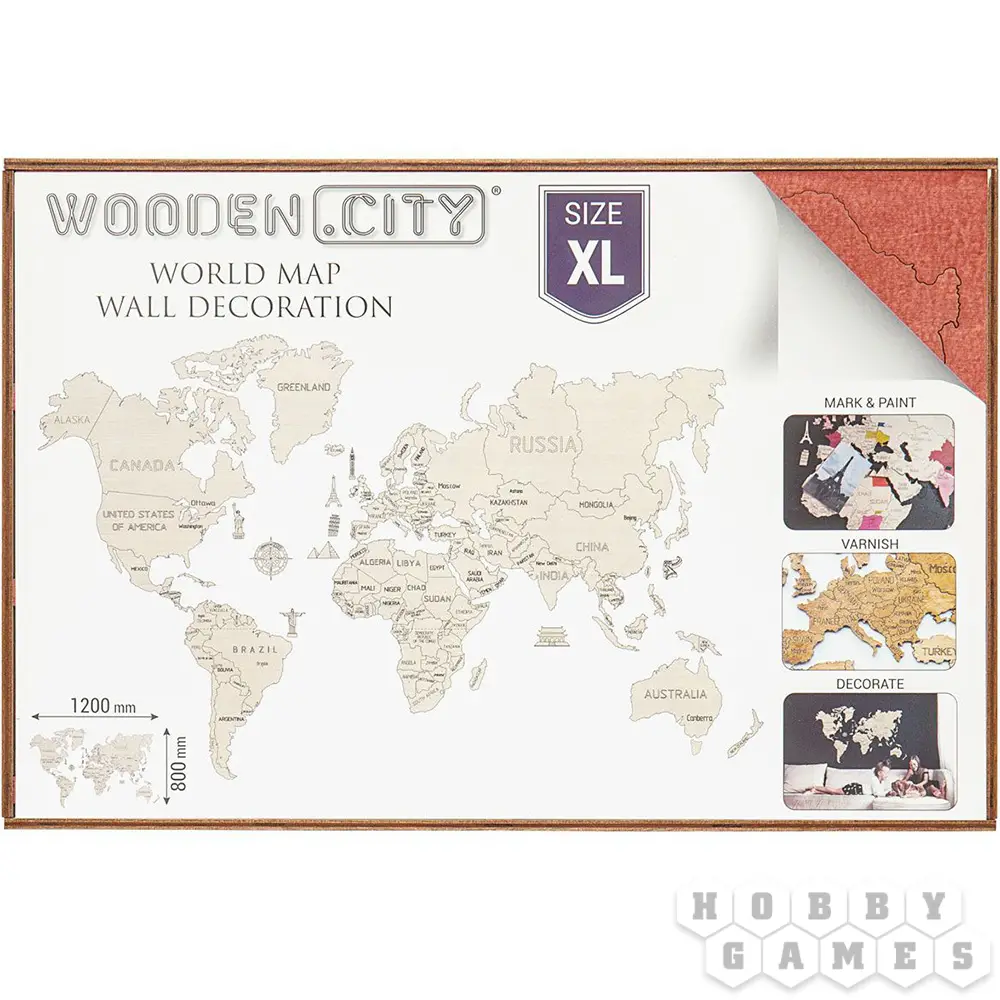 Раскрасьте карту по своему вкусу и отметьте историю своих путешествий. Деревянная карта мира изготовлена из экологически чистых материалов, легко собирается и крепится на стену с помощью двухстороннего скотча. Сборка не требует использования клея.