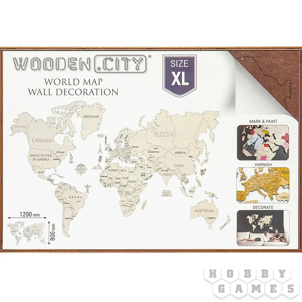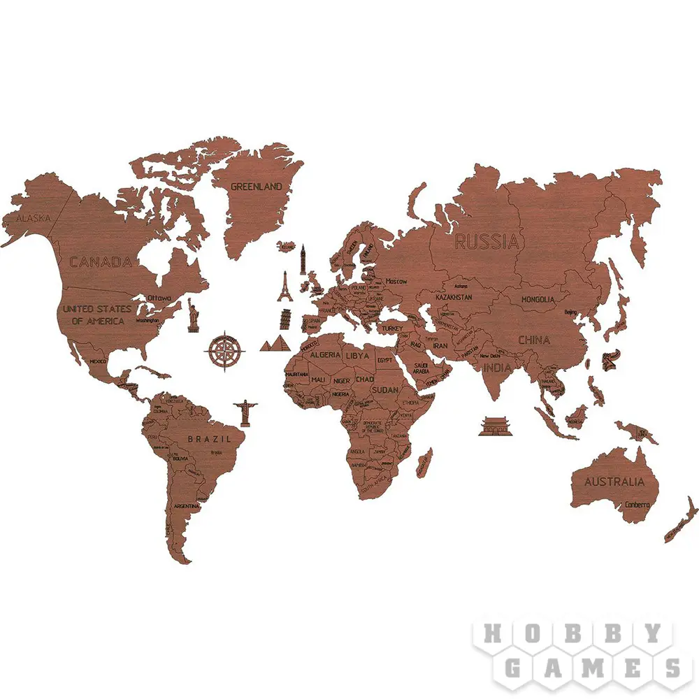 Раскрасьте карту по своему вкусу и отметьте историю своих путешествий. Деревянная карта мира изготовлена из экологически чистых материалов, легко собирается и крепится на стену с помощью двухстороннего скотча. Сборка не требует использования клея.