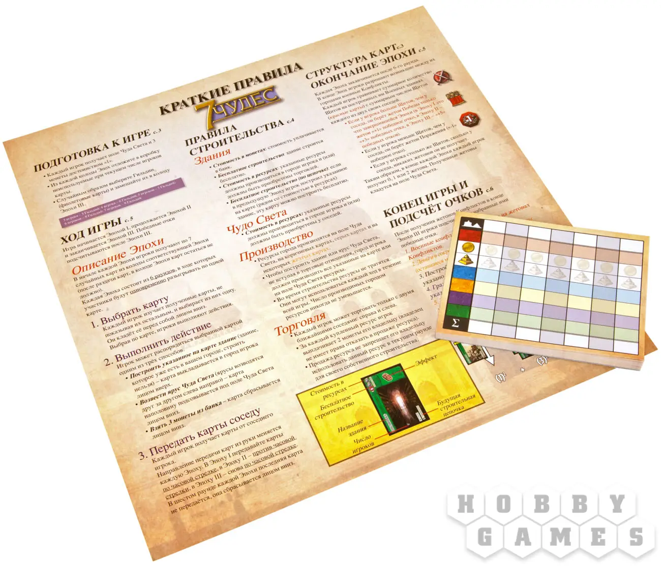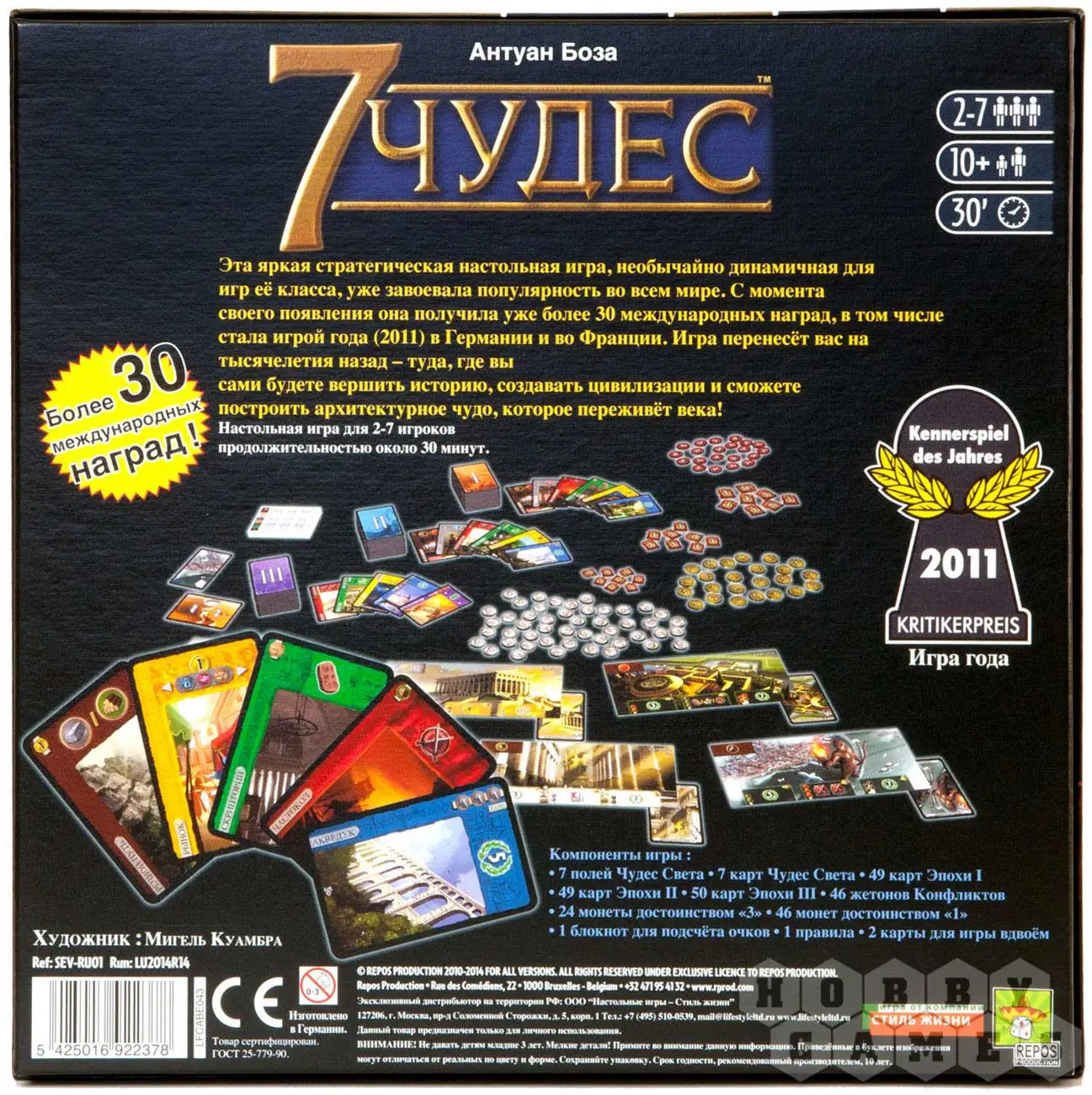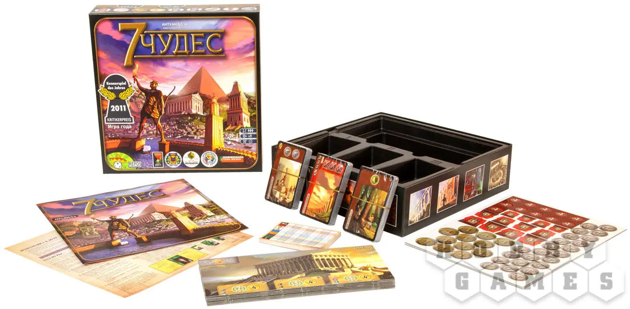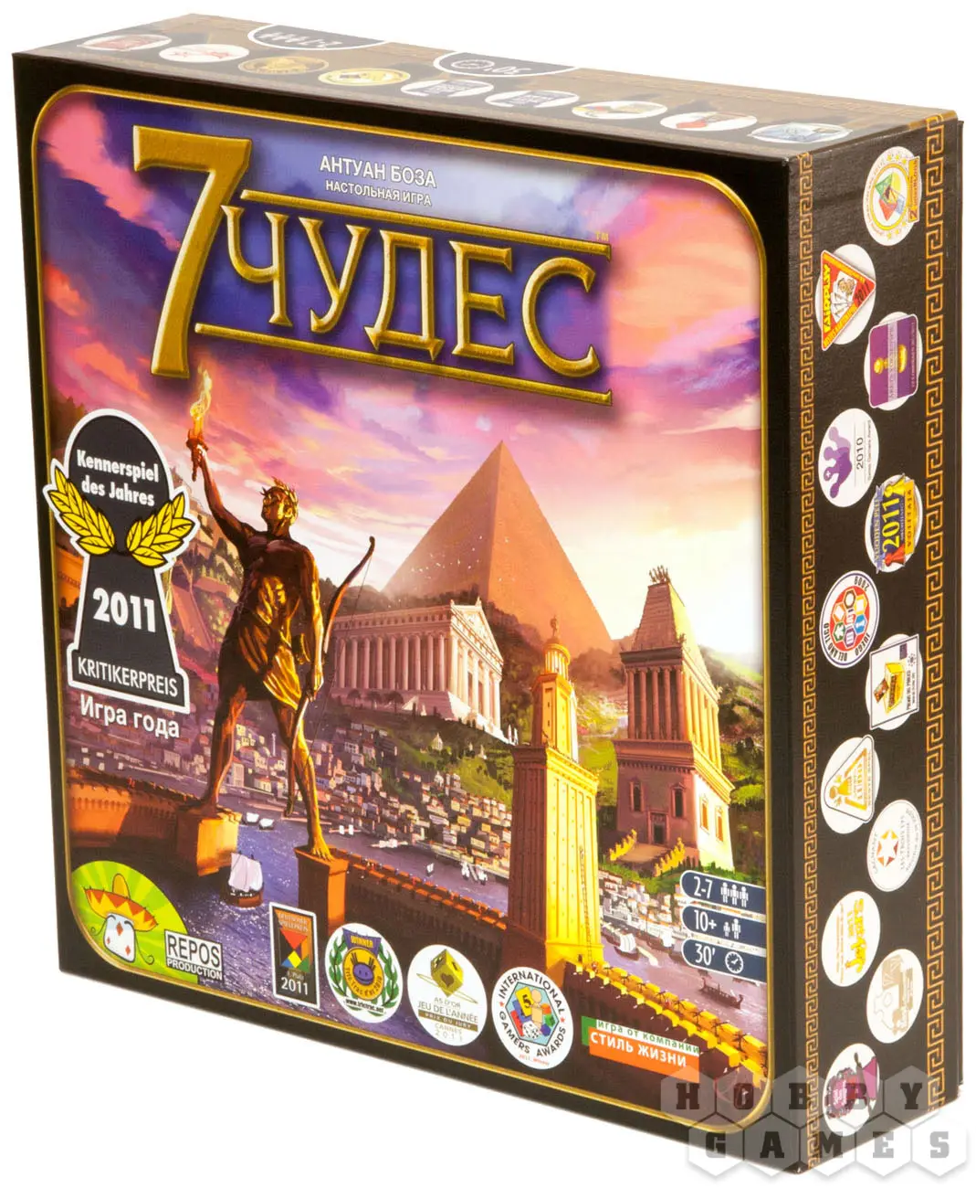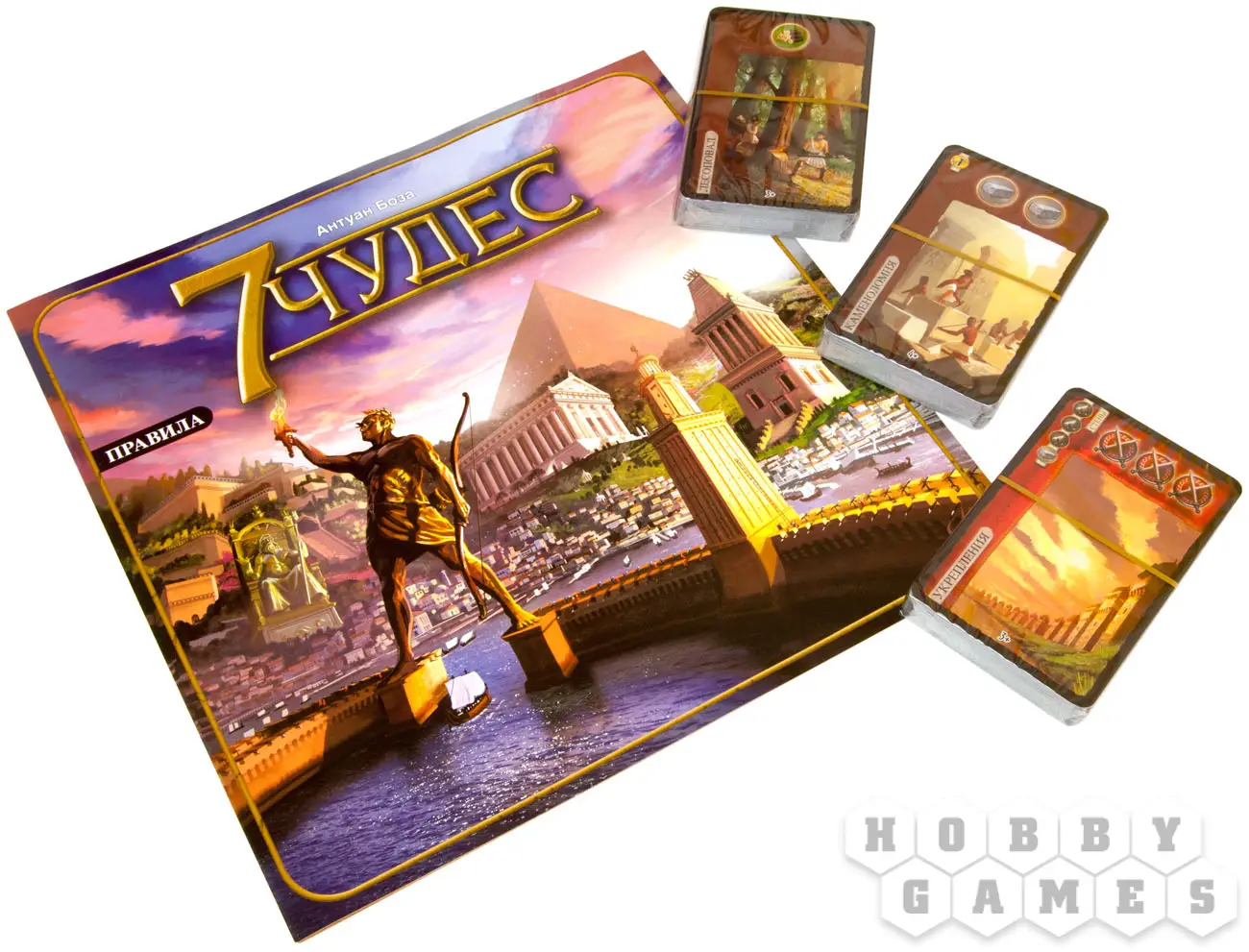 За все Ваши усердия вы будете отблагодарены заветными победными очками. Каждое чудо света имеет уникальную специфику и дает разные бонусы на время игры или же большое количество очков в конце, так что попытайтесь не забыть о его постройке, а это возможно, ведь в игре так много способов выбиться в лидеры. Следует также отметить, что 7 чудес света – карточная игра с потрясающим артом, который не будет отвлекать от самого игрового процесса, но при этом взгляд ваш всегда будет прикован к игровому столу.
