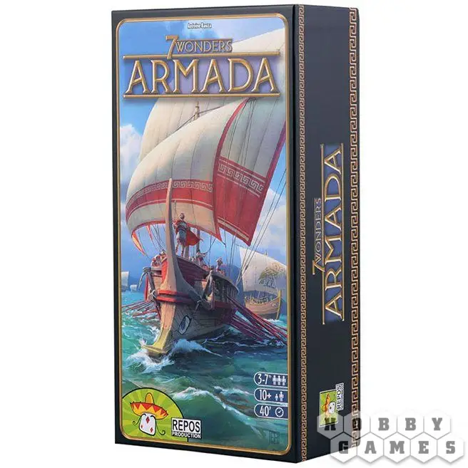 7 Wonders: Armada ("7 Чудес: Армада") – это крупное дополнение для настольной игры "7 Чудес", которое можно сочетать с другими дополнениями в любой комбинации. Каждый игрок получит специальное морское поле в дополнение к своей доске чудес. Также внутри вы найдёте новые красные, зелёные, жёлтые и синие карты для замешивания в колоду. Каждый раз, играя карты этих цветов, вы дополнительно можете заплатить стоимость, указанную на вашем морском поле, чтобы продвинуть корабль соответствующего цвета вверх по треку, получая особые бонусы. Приведите свою нацию к победе на морях вместе дополнением Armada!