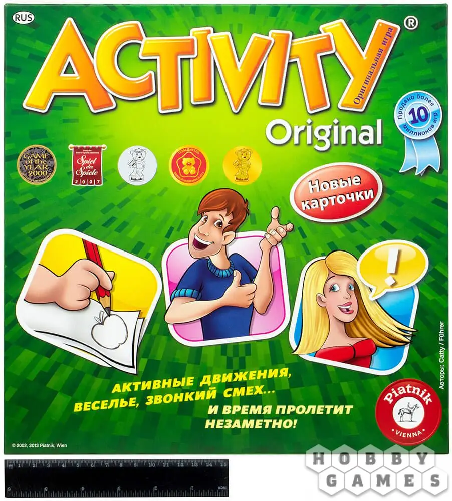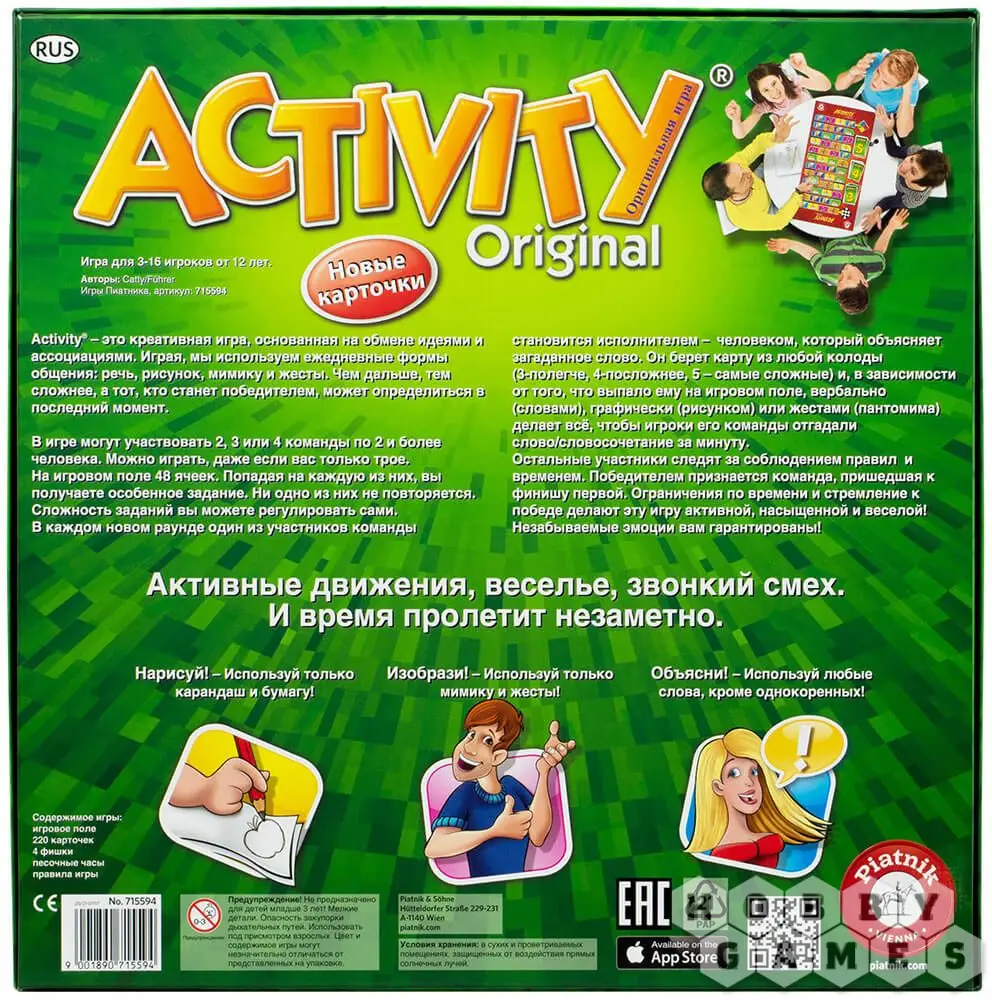 Activity 3 – новое издание игры с классическими правилами и обновлённым дизайном. Новые карточки со словами готовы бросить вызов вашей изобретательности и умению доносить информацию разными способами: объясняя вербально, с помощью рисунка или пантомимы. Эта игра отлично подойдёт для большой и дружной компании, но играть в неё можно и в достаточно узком кругу, ведь для компании из трёх человек есть отдельные правила. Испытайте свою способность понимать друг друга – и поторопитесь, ведь на каждое слово отведена лишь минута.