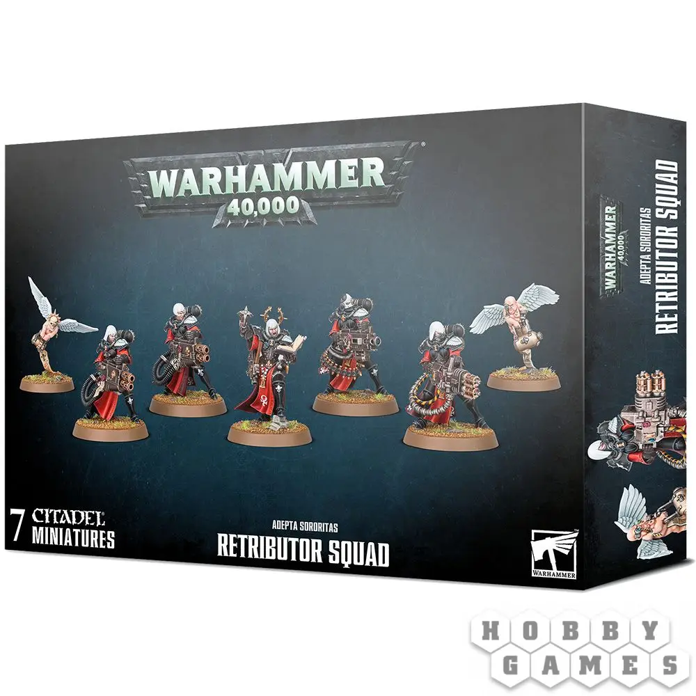 Этот набор позволит вам собрать пять Воздаятельниц и два Херувима. Каждую из Воздаятельниц можно вооружить тяжёлым болтером, мульти-мелтой или тяжёлым огнемётом на ваш выбор. В наборе содержится по два оружия из этого списка. Старшая Воздаятельница (Retributor Superior) может быть вооружена разнообразным вооружением дальнего и ближнего боя.