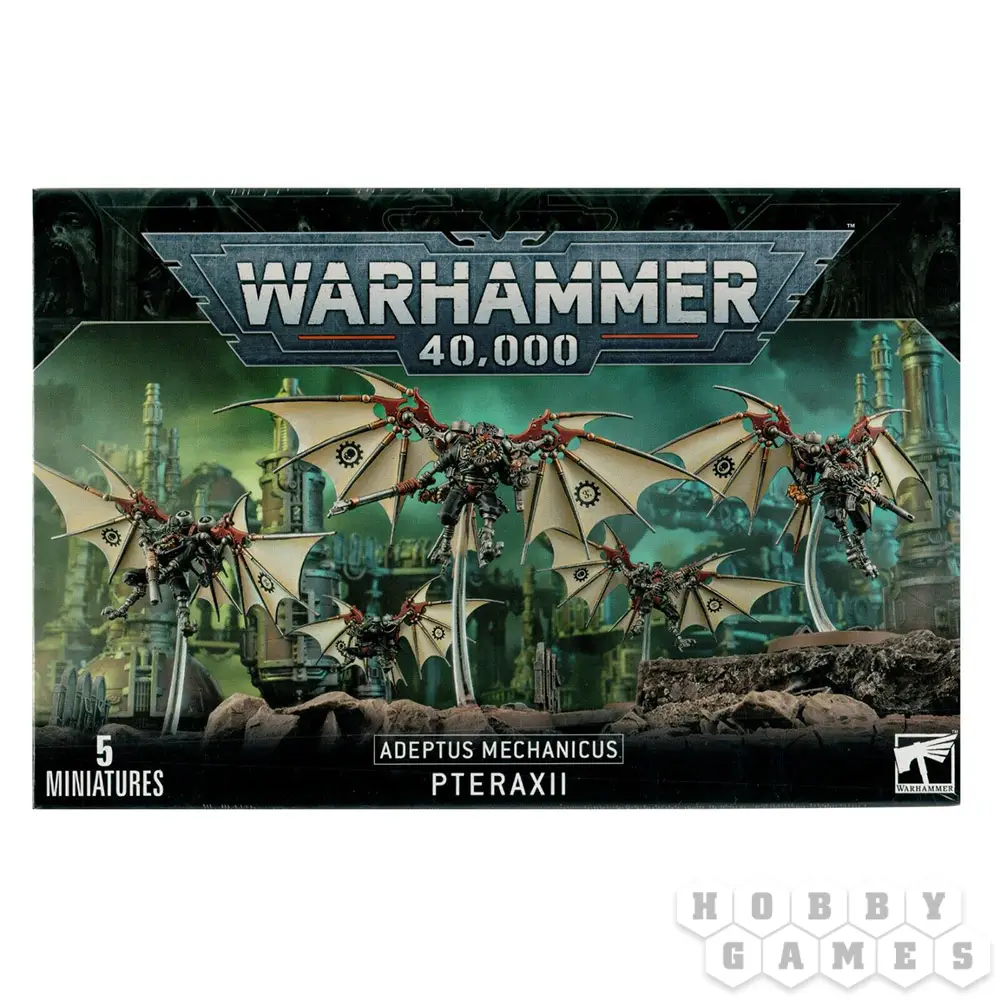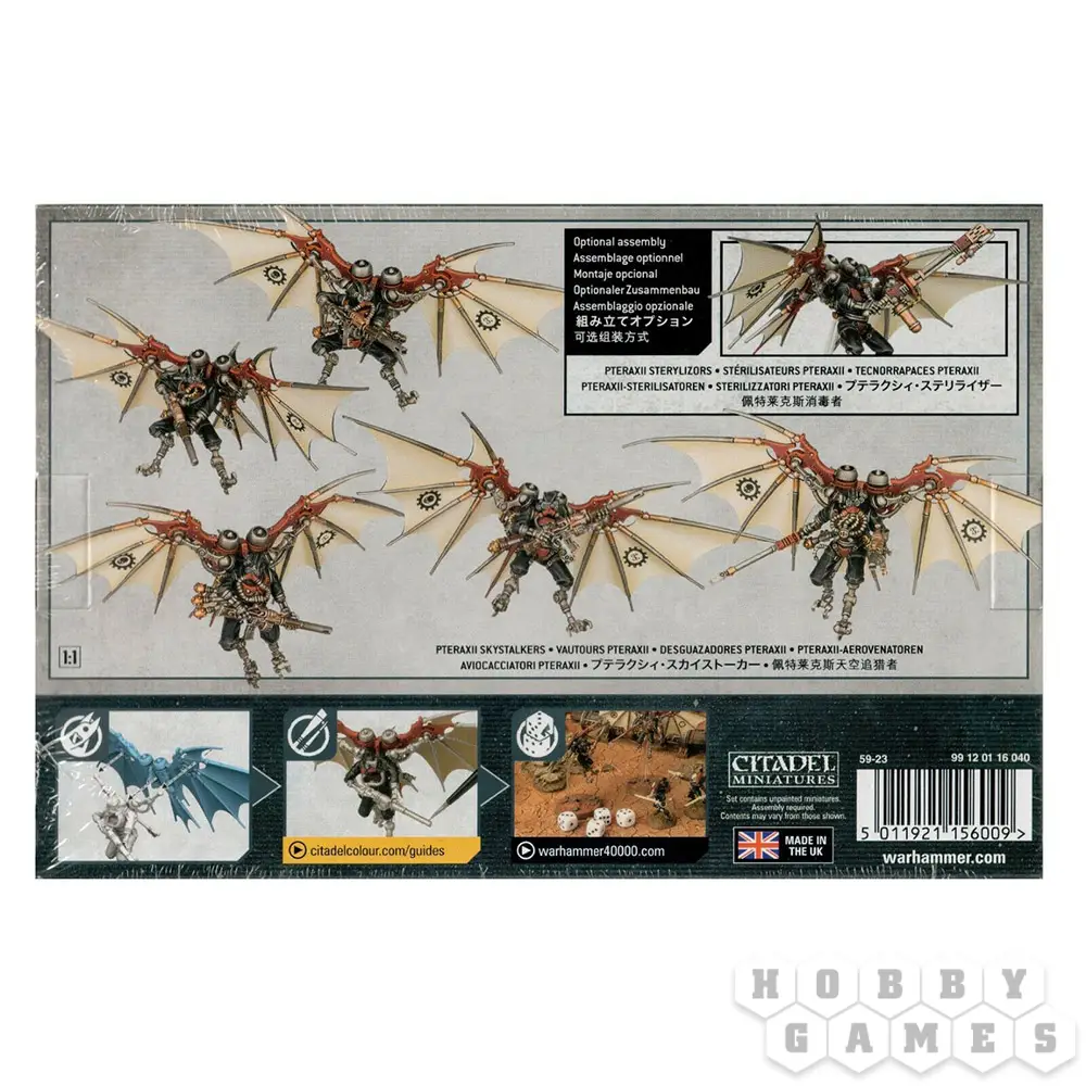 Одной из многих специализированных каст воинов-киборгов, представляющих Адептус Механикус, являются Птераксии (Pteraxii), чьими сильными сторонами являются молниеносная реакция и меткость. Рефлексы Птераксиев акцентированы парой укороченных мыслительных модулей, которые подавляют их первичные функции. Имплантированные над лопатками на их спине отростки конечностей (scapuli superior) позволяют им носить устройство с реактивными лётными двигателями и подключёнными к ним крыльями. Это приспособление для полётов уже стало неотъемлемой частью Птераксиев, которые, тем не менее, способны выполнять разные стратегические задачи. Небесные ловчие (Skystalkers) ищут выгодные позиции, с которых они могут спикировать на своих жертв; это могут быть как достаточно изолированные точки на поле боя, так и вполне открытые пространства. Их атаки разнообразны: в одних случаях они внезапно обрушиваются на врага, в других – осуществляют кинжальные выпады с летальным исходом.