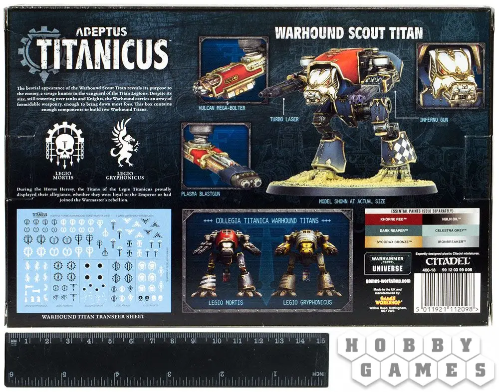 В набор входят все необходимые пластиковые детали для сборки 2 разведывательных титанов типа "Пёс войны" для использования в играх "Adeptus Titanicus". Пригнувшиеся, словно припавшие к земле благодаря панцирю и опущенной голове титаны выглядят особенно агрессивными, словно выслеживающими добычу. Их легко можно отличить от собратьев по уникальный кабине, похожей на морду собаки и расположенной на одном уровне с орудиями, устанавливаемыми на держателях по обе стороны от неё. На остальной части корпуса титана немного украшений. "Псы войны" разработаны в расчёте на то, чтобы быстро двигаться, а не стоять на месте, держа удар, впрочем, слабыми их также никак не назовёшь. В коробке Вы найдёте четыре разных головы, по два панциря для предателей и лоялистов, наплечники, на которые можно нанести символику вашей армии, а также поножи трёх типов – не украшенные, отмеченные знаком имперского орла или же символом Опус Титаника. Благодаря возможности поворота в пояснице Вы сможете придать своей модели иллюзию движения и расположить её в разных позах.