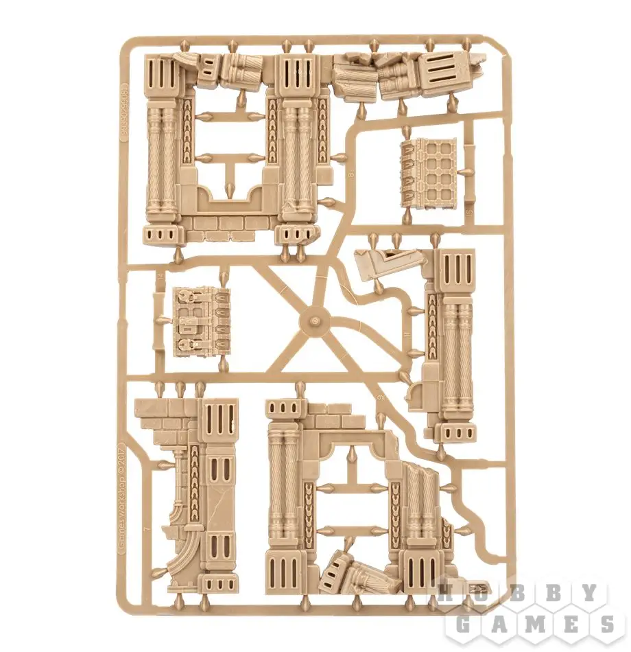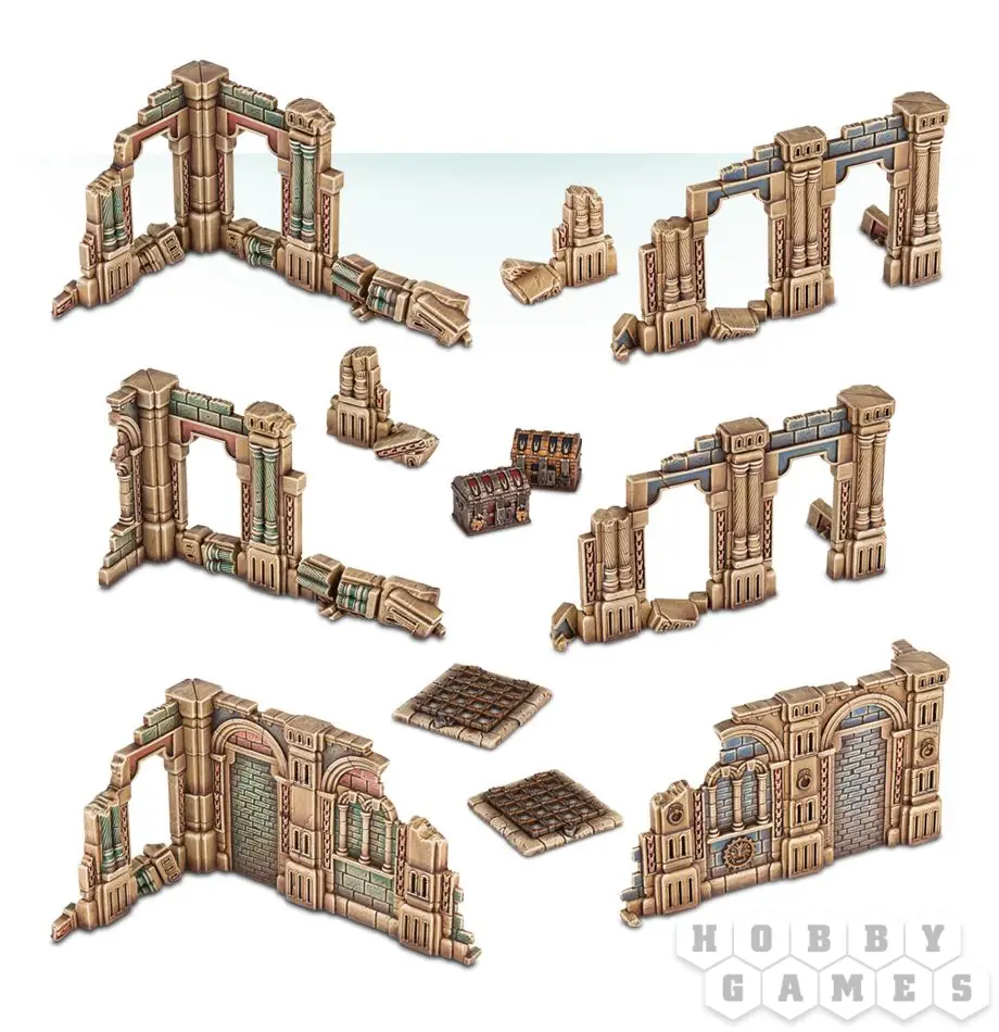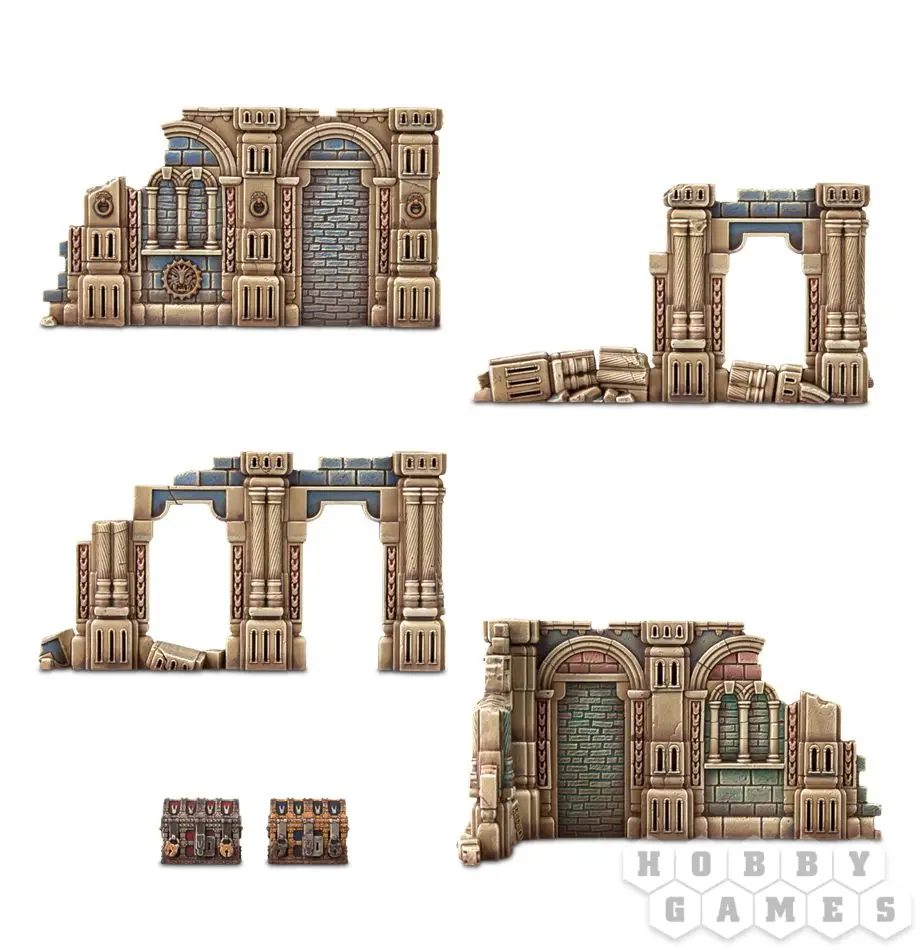 Набор Azyrite Ruins поставляется в предварительно покрашенном виде - достаточно отделить компоненты от литников и приставить компоненты друг к другу, чтобы получить полностью готовые к игре элементы террейна.Этот многокомпонентный пластиковый набор позволит вам собрать шесть больших стен, две малых стены, а так же два сундука и два люка. Все пластиковые компоненты из набора Azyrite Ruins созданы, чтобы его моно было легко собрав без клея, просто приставив части друг к другу.