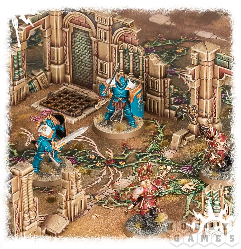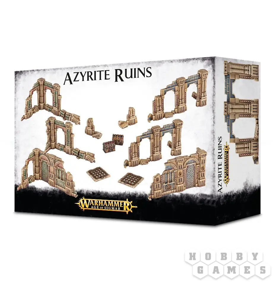 Таков закон Эпохи Сигмара - ничто в нем не вечно. Королевства приходят и уходят и одни государства восстают из праха других. В таком мрачном мире буквально на каждом шагу можно встретить развалины некогда величественных сооружений и бывших когда-то грандиозными архитектурных произведений искусства. Теперь же на их месте лишь бледная тень былого величия. В небесном мире Азир чаще всего можно встретить Азиритовые Руины (Azyrite Ruins) - обломки разрушенных в войне с хаосом замков. Никто точно не знает какие секреты могут хранить Азиритовые руины (Azyrite Ruins) для странника. Порой они оказываются курганами, где души воинов былых эпох восстают, чтобы даже после смерти защитить свои могилы, а иногда Азиритовые Руины (Azyrite Ruins) становятся настоящими кладезями древних артефактов и сокровищ. Разнообразьте свои партии в Warhammer Age of Sigmar вместе с набором быстросборного террейна Azyrite Ruins!