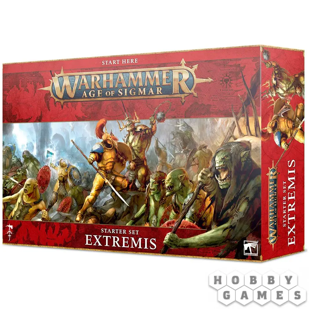 - 80-страничную книгу Extremis Edition Book в мягкой обложке: Откройте для себя историю мира Warhammer Age of Sigmar, а также отдельных фракций и юнитов в книге. Книга также содержит несколько вводных учебных планов сражений, в которых используются миниатюры из набора. Планы разработаны специально, чтобы научить вас основам игры.