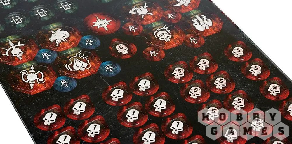 Восемнадцать кубиков D6 с логотипом Warcry на шестёрке