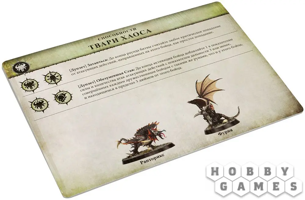 Шесть Фурий (Furies) и шесть Рапториксов (Raptoryx) – отвратительных зверей хаоса, которые могут вторгаться в ваши битвы или быть добавлены в ваши банды в качестве рабов