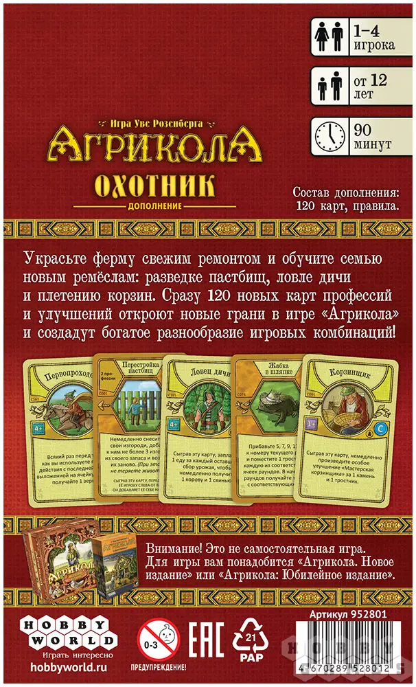 Внимание! Это дополнение. Для игры вам понадобится базовая версия "Агрикола" или "Агрикола. Юбилейное издание".
