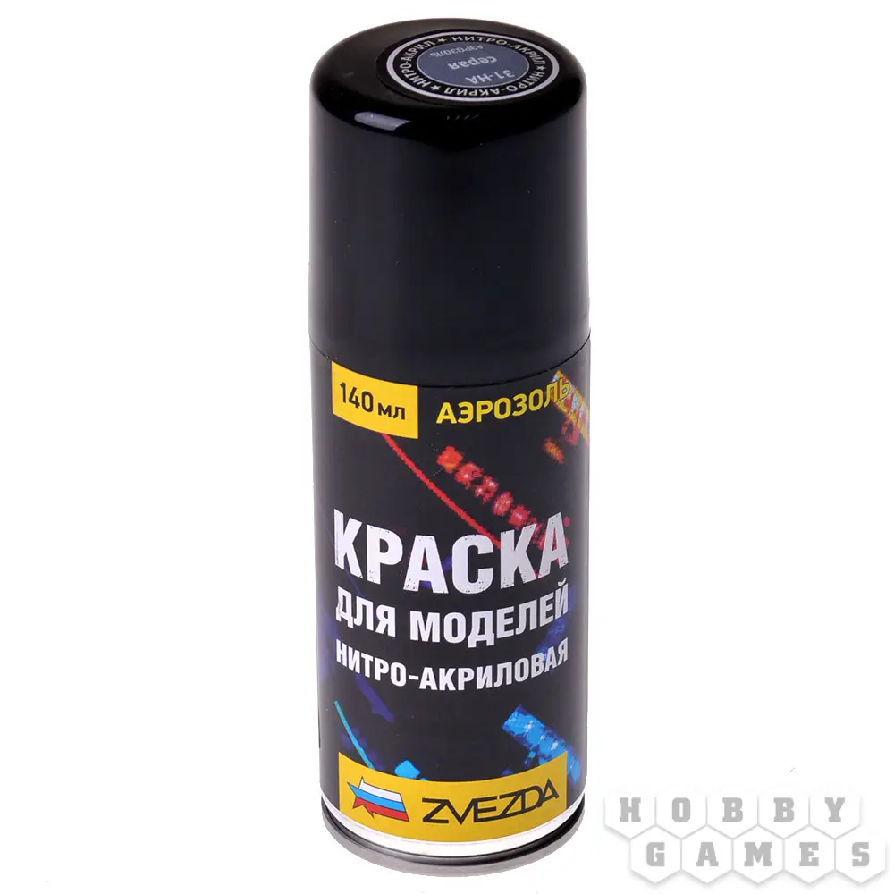 Аэрозольная нитро-акриловая краска от компании Zvezda предназначена для покраски пластиков, которые используются при изготовлении моделей, но также может применяться в различных декоративных и дизайнерских работах. У этой краски очень высокая укрывистость, а ещё она обладает хорошей адгезией не только к пластику, но и другим материалам, например, бетону, дереву или металлу.