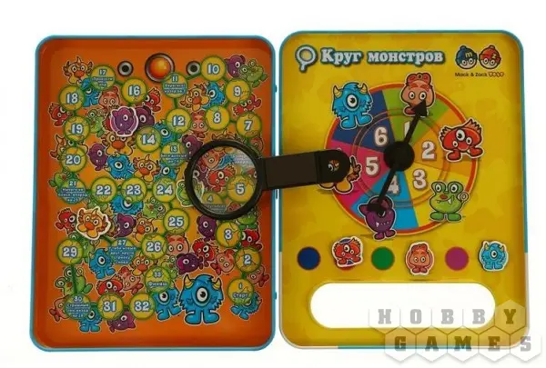 В одном наборе сразу 2 игры. Первая – игра на внимание и быстроту реакции, в ходе которой ребенку предстоит с помощью лупы отыскивать на доске разных монстриков. Вторая – старая добрая «ходилка», в которой нужно пройти через игровой поле по нумерованным ячейкам.