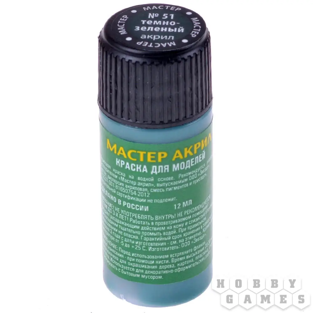 Краска Zvezda "Мастер акрил": тёмно-зелёный