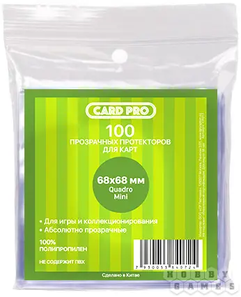 Протекторы Card-Pro Quadro mini прозрачные (100 шт., 68x68 мм)