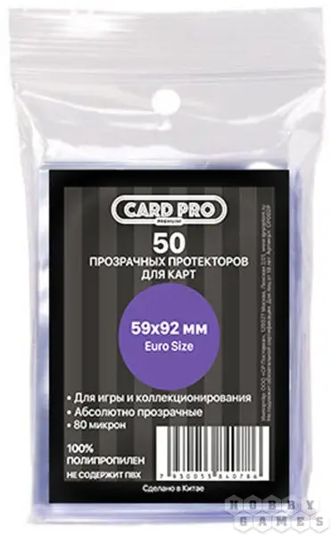 Протекторы Card-Pro Euro Size прозрачные премиум (50 шт., 59x92 мм)