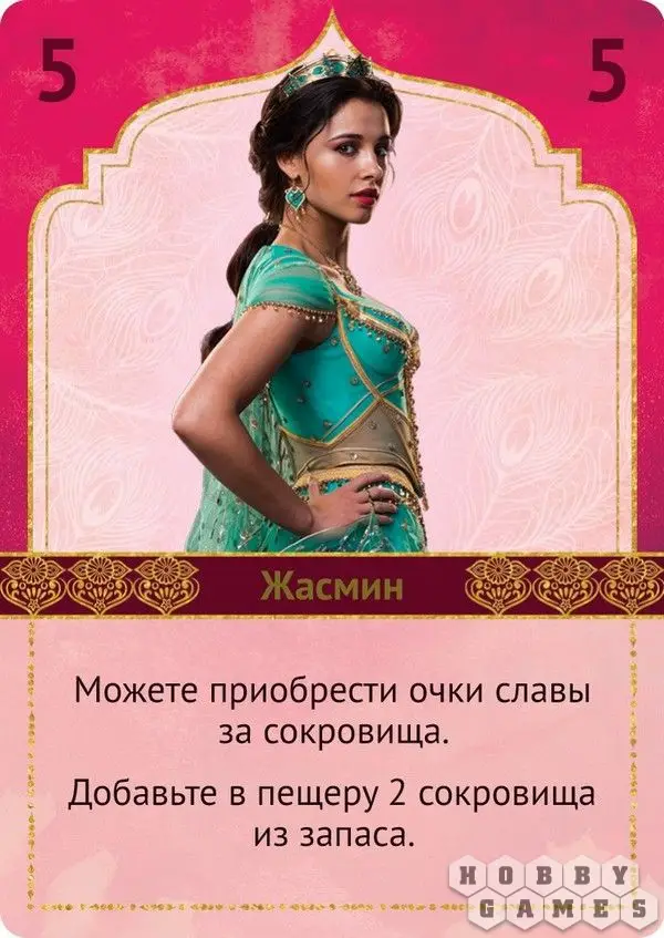 Жасмин – номер пять, позволяет потратить ваши накопленные сокровища и получить славу! Также добавляет два сокровища в пещеру;