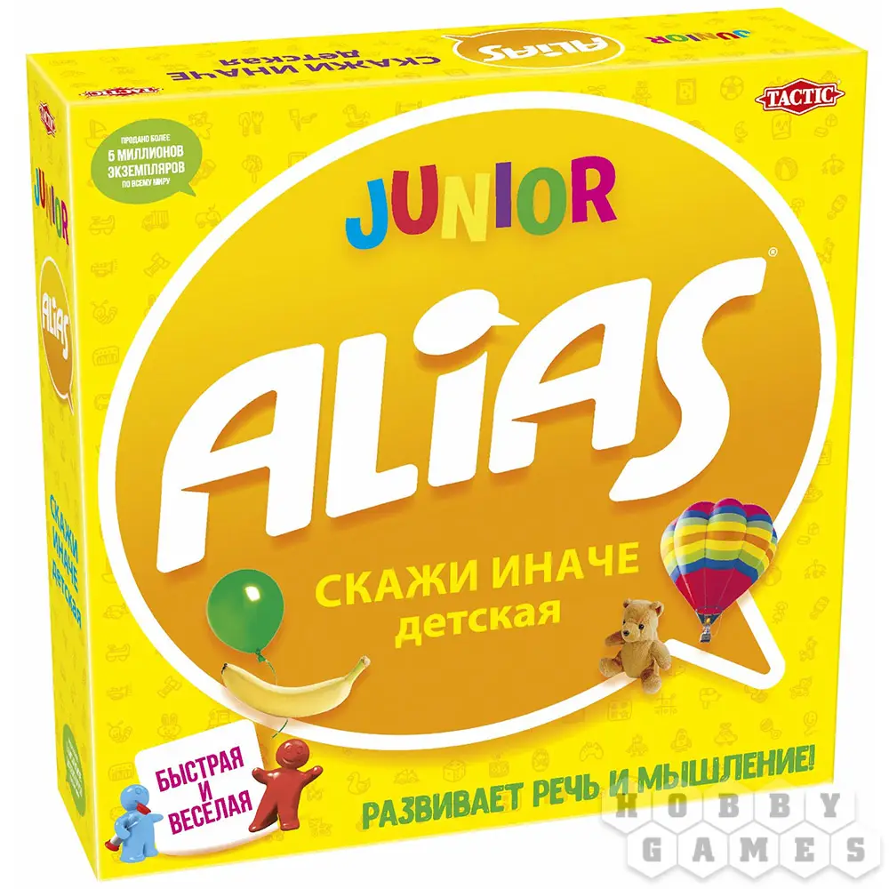 Alias – всемирно известная словесная серия игр, в которой насчитывается уже десятки различных версий и вариантов, как для самых маленьких, так и для взрослых компаний. Цель игры предельно проста и заключена в самом названии игры, ведь Alias означает "также известный как"… Команды, чтобы заработать победные очки, должны будут объяснять загаданные слова посредством использования любых других, но не однокоренных. Также обычно запрещается использовать аналоги на иностранных языках, зато разрешается и поощряется включение пантомимы и приведение самых невероятных аналогий для объяснения нужного вам слова. Но самое пикантное в игровом процессе то, что время поджимает, а чем больше вы успеете отгадать слов, тем дальше продвинется ваша команда… В общем, будем шумно и весело "Говорить иначе"!