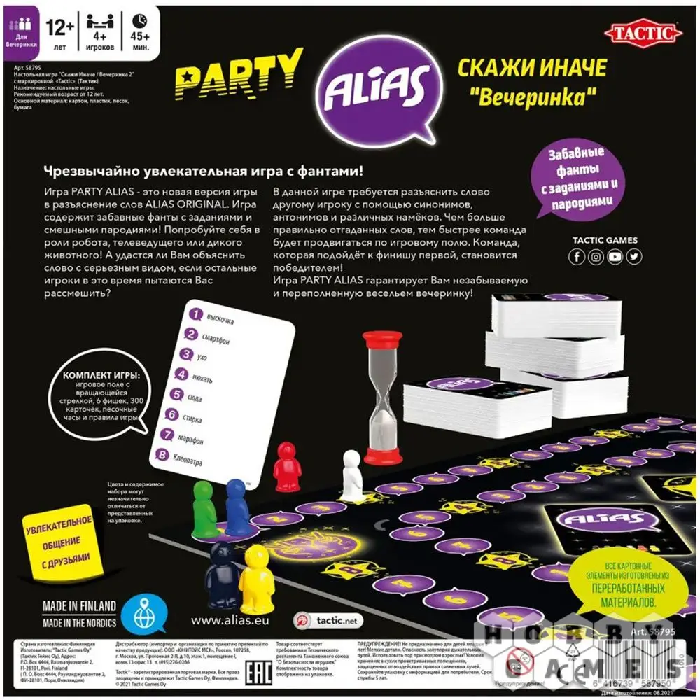 Alias Party – это новая версия уже полюбившейся многим настольной игры Alias ("Скажи иначе"). Осталась прежней цель игры, сама же игра... игрокам теперь потребуется и умение объяснять слова.