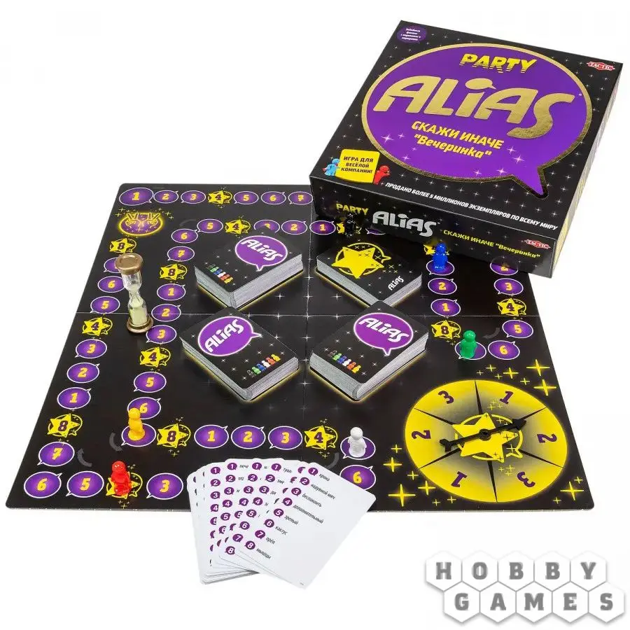 Данный вариант адаптирован для вечеринок и тусовок. В этой игре, так же как и в прочих играх серии, необходимо при помощи подсказок изобразить необходимое слово товарищу по команде (подсказки – слова-синонимы и другое). В отличие от прочих игр серии, в Alias Party придётся объясняться новыми, необычными и невероятными способами, если фишка команды попадает в поле Party ("Вечеринка"). Тут будьте готовы, что придется не только объяснять слова а, к примеру, рассказать анекдот, в котором есть слова из карточки, объяснить слово вприпрыжку либо в необычной позе. Также может выпасть задание объяснять слова в разных эмоциональных состояниях – счастливом, злом, истерическом. Эта игра выявит способности каждого объяснить, призовет к креативности и активности.