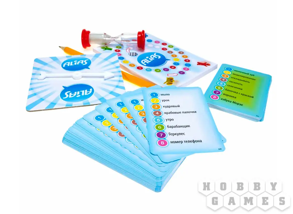 Alias – всемирно известная словесная серия игр, в которой насчитывается уже десятки различных версий и вариантов, как для самых маленьких, так и для взрослых компаний. Цель игры предельно проста и заключена в самом названии игры, ведь Alias означает "также известный как"… Команды, чтобы заработать победные очки, должны будут объяснять загаданные слова посредством использования любых других, но не однокоренных. Также обычно запрещается использовать аналоги на иностранных языках, зато разрешается и поощряется включение пантомимы и приведение самых невероятных аналогий для объяснения нужного вам слова. Но самое пикантное в игровом процессе то, что время поджимает, а чем больше вы успеете отгадать слов, тем дальше продвинется ваша команда… В общем, будем шумно и весело "говорить иначе"!
