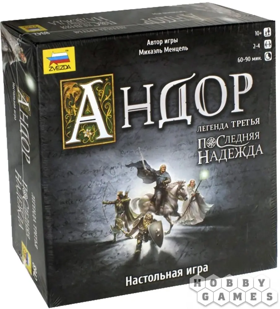 "Андор. Последняя надежа" – независимое продолжение великолепной кооперативной игры "Андор", а также завершающая часть приключений наших славных героев. Кооператив подразумевает, что игрокам предстоит объединить свои силы, чтобы справиться против самой игры и пройти все сценарии! Все известные вам сюжетные ветки закончатся именно здесь. Вам не потребуются предыдущие игры серии, так как в этой коробке есть всё необходимое, в том числе для прохождения обучающей миссии. Это прекрасное приобретение для всех фанатов базовой части, а также для всех неравнодушных к интересным сказочным мирам. Здесь вы узнаете о судьбе Андора, который пережил столько бед, а также окунётесь в водоворот новых безумных приключений!