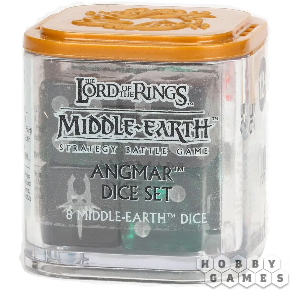 Данный набор кубиков, посвящённый падшему королевству Ангмара (Angmar) – прекрасное дополнение к вашим партиями в Middle-earth Strategy Battle Game. Кубики переливаются тёмно-зелёным и чёрным дымом, а символы на них, включая корону Короля-Чародея (Witch-king) на месте шестёрки, выполнены серебряным цветом.