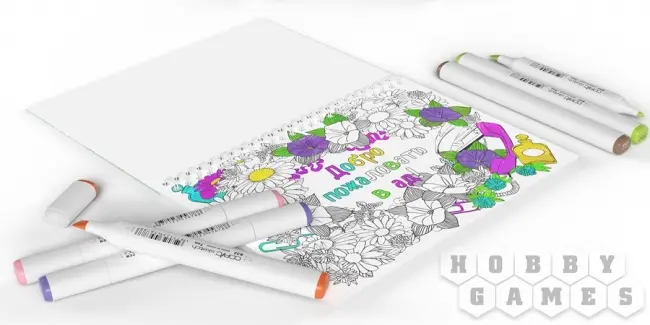 Альбом из 20 раскрасок на плотной офсетной бумаге, формат 21*15 см, в плотной обложке на удобной пружинке.