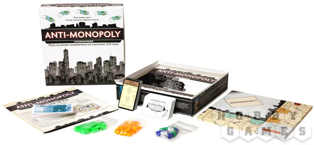 Именно идея разделения игроков на конкурентов и монополистов и подчинения их разным правилам радикально отличает эту игру от множества различных монополий. В результате, у вас появилась замечательная возможность сыграть в знакомую игру совершенно по-новому!