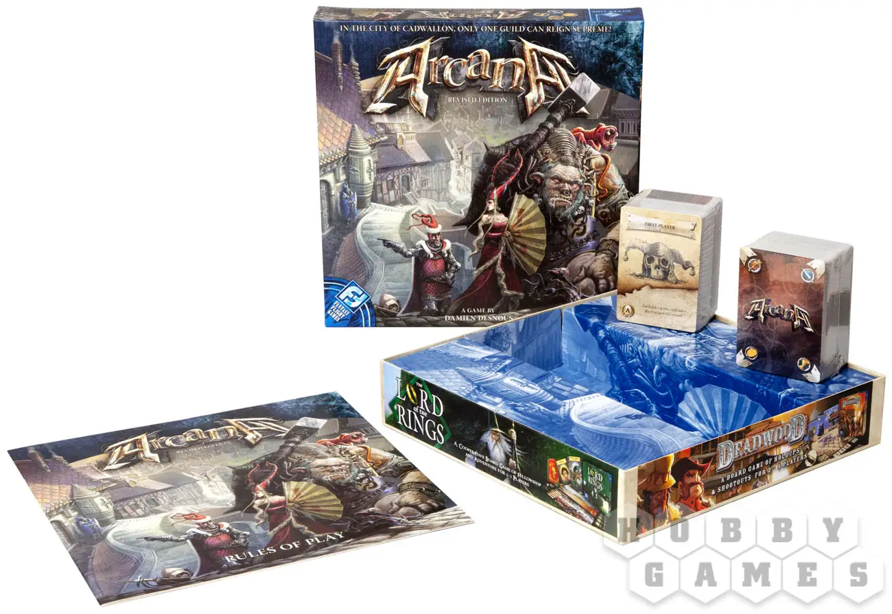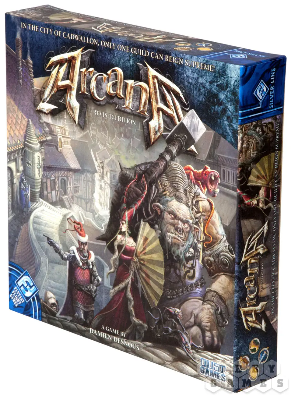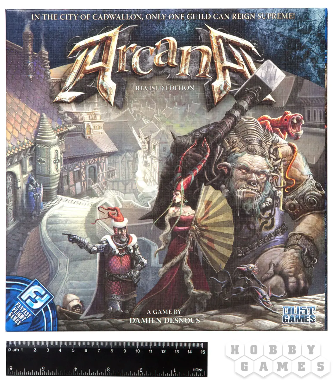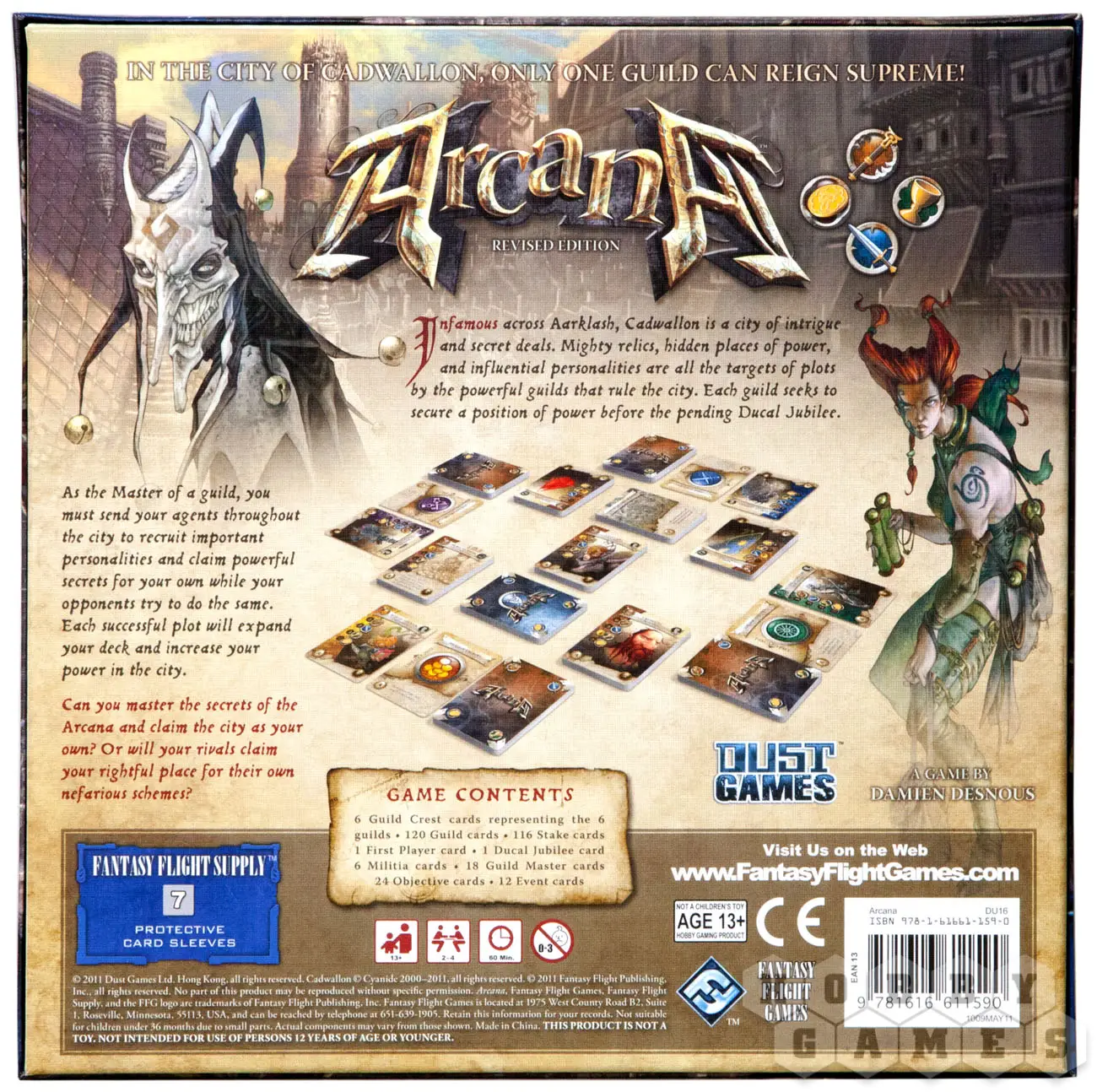 Настольная игра «Arcana Revised Edition» - это карточная игра, основанная на вербовке и сборе ресурсов для 2-4 хитроумных лидеров Гильдий. Заполучите расположение самых известных граждан, захватите самые выгодные участки города и ценные сокровища с помощью взяток и открытой борьбы за власть. Наберите наибольшее количество победных очков, чтобы стать мастером гильдии Cadwallon!