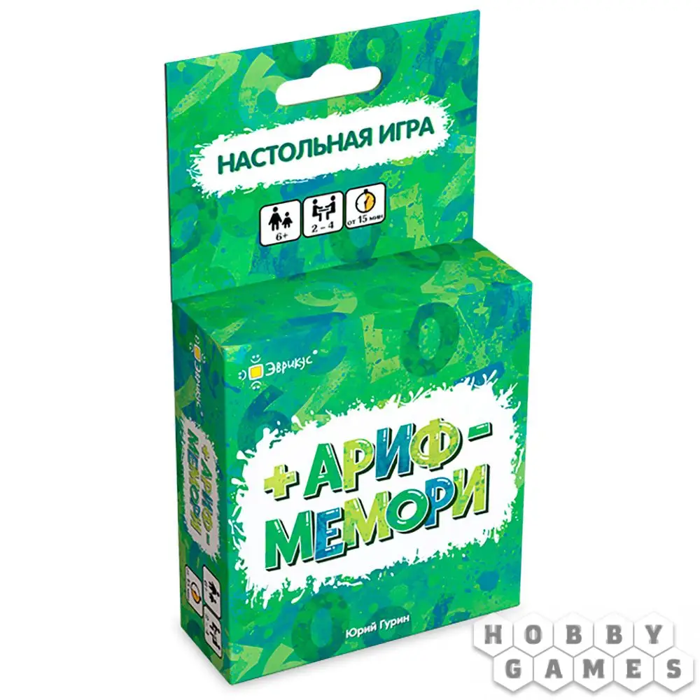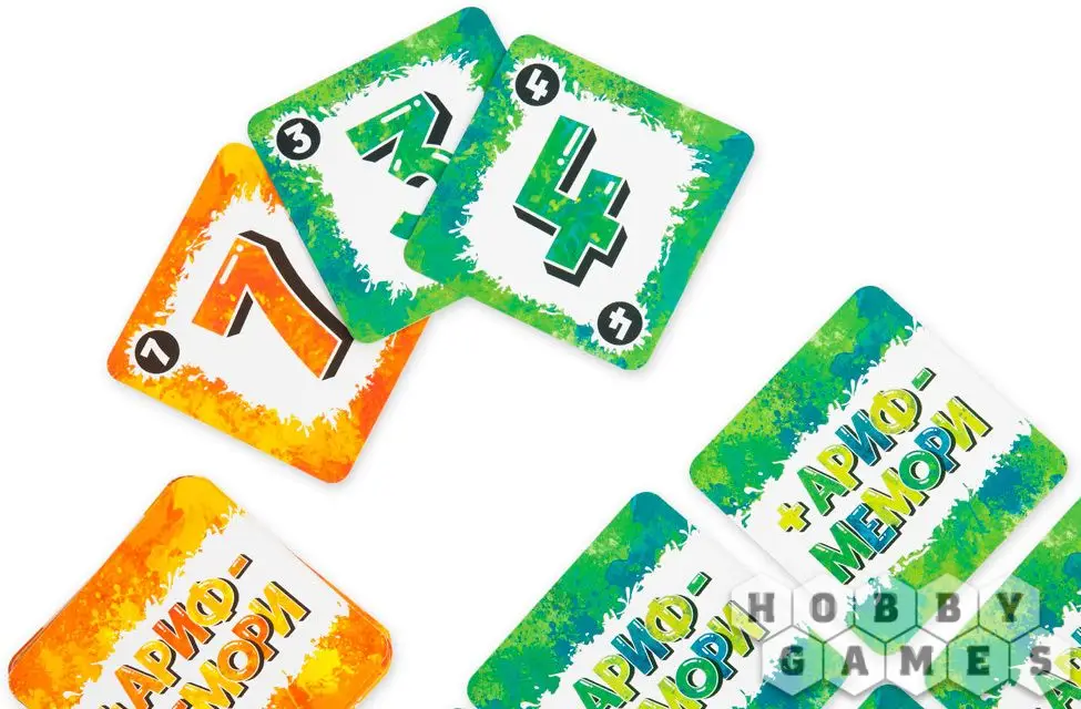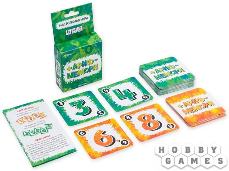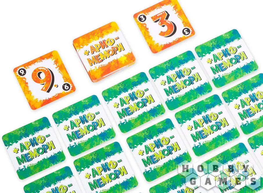 "Арифмемори" – это быстрая и простая логическая настольная игра на память и внимание. Она отлично подойдёт, чтобы развить математическое мышление у дошкольника или просто весело скоротать время с семьёй. В отличие от простого "Мемори", в арифметической версии вам надо будет не только запоминать значения на карточках c числами, но и складывать и вычитать их друг из друга. Чтобы победить, игрокам нужно составлять верные математические равенства: если с помощью сложения или вычитания из карточек с числами можно получить значение карточки с результатом, вы забираете этот результат себе – и игрок с наибольшим количеством верных результатов побеждает.