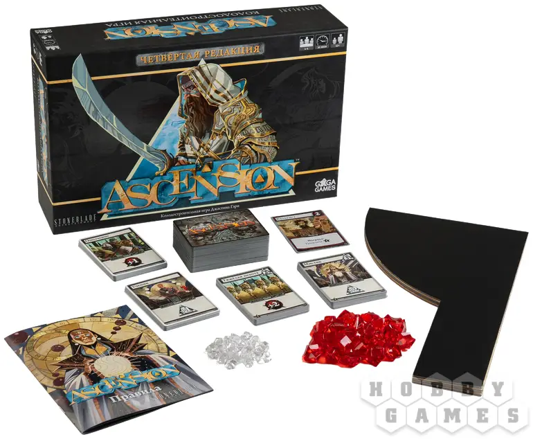 Ascension – классический колодостроитель, ставший основой для многих современных игр. Перед вами более сотни тщательно прорисованных карт, которые представляют героев, могущественные конструкции и опасных монстров, а также пластмассовые фишки и игровое поле для динамичных партий. Игроки собирают свои колоды, используя четыре фракции, каждая из которых дарит бонусы и уникальные стратегии. Механики отточены временем – игра остаётся глубокой и соревновательной, но при этом понятной новичкам благодаря несложным правилам.