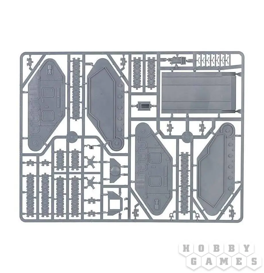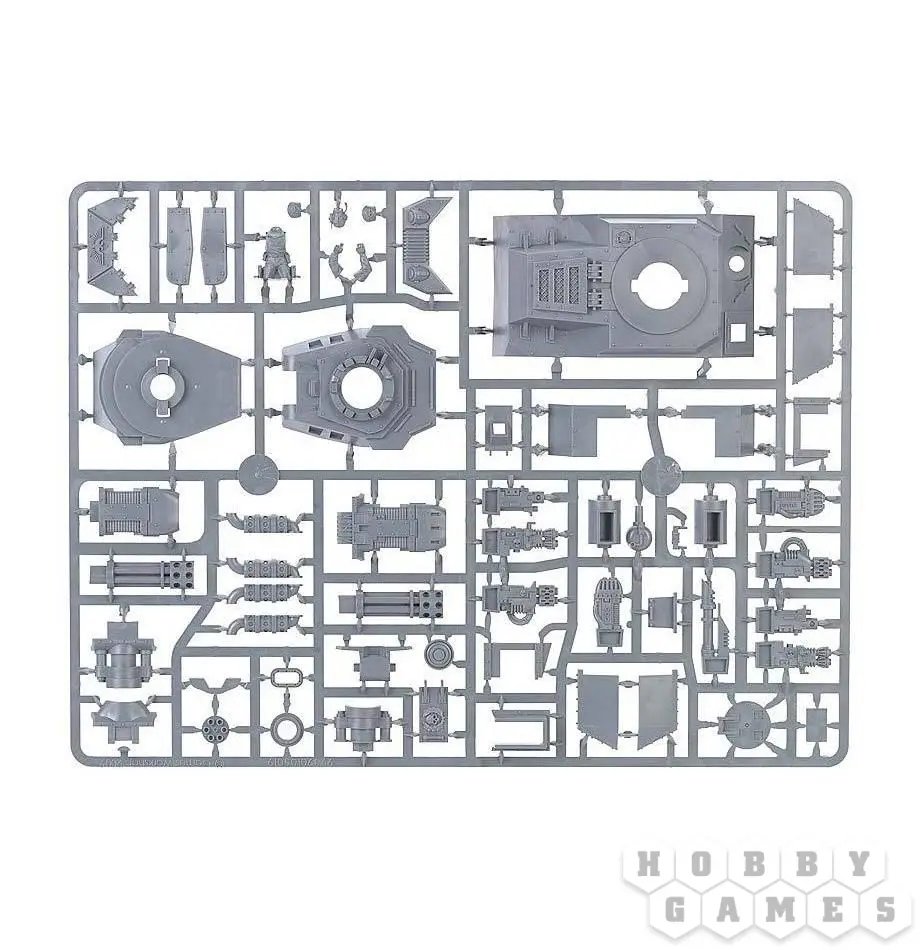 В набор входят всё необходимое для сборки танка как "Разрушителя", а также как "Палача" или "Карателя", если Вы предпочитаете эти типы. Среди 98 деталей Вы найдёте всё для использования любых доступных опций установки орудий на спонсонах и корпусе "Лемана Русса", в том числе: лазерную пушку, тяжёлые болтеры, тяжёлые огнемёты, мультимелты и плазменные пушки. Также Вы получите командира танка, установку для метания дымовых боеприпасов и переводной лист с символикой.