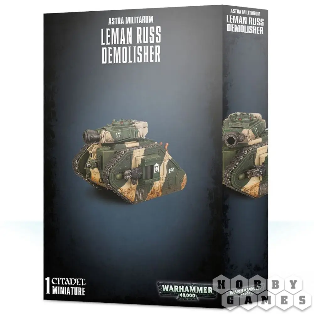 В набор входят всё необходимое для сборки танка как "Разрушителя", а также как "Палача" или "Карателя", если вы предпочитаете эти типы. Среди 98 деталей вы найдёте всё для использования любых доступных опций установки орудий на спонсонах и корпусе "Лемана Русса", в том числе: лазерную пушку, тяжёлые болтеры, тяжёлые огнемёты, мультимелты и плазменные пушки. Также вы получите командира танка, установку для метания дымовых боеприпасов и переводной лист с символикой.