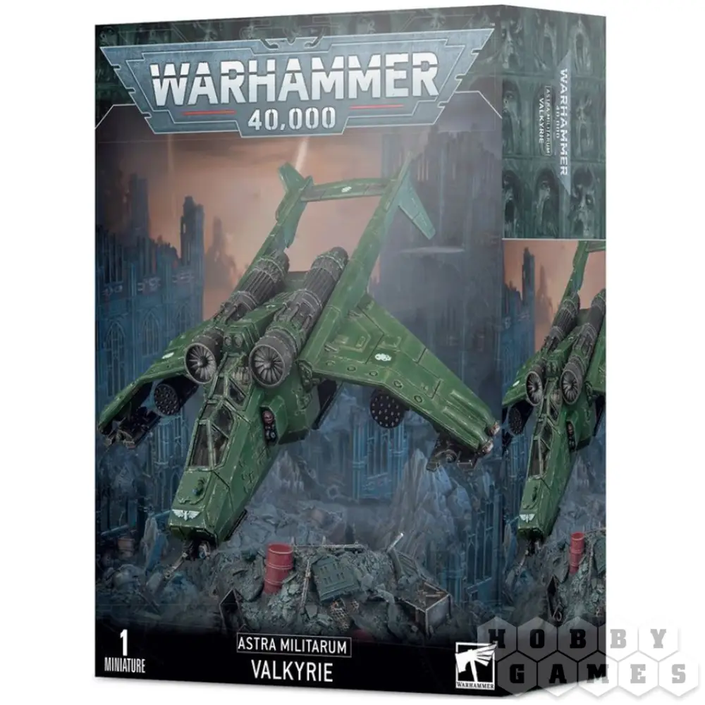 Набор содержит 128 пластиковых деталей для сборки миниатюры "Валькирии" Имперской гвардии (Imperial Guard). Комплект предусматривает множество доступных опций вооружения, включая ракетные установки (rocket pods), лазерную пушку (lascannon), мультилазер (multi-laser), ракеты "Адский удар" (Hellstrike missiles) и тяжёлые болтеры (heavy bolters). Также в наборе вы найдёте большую овальную подставку с ножкой.