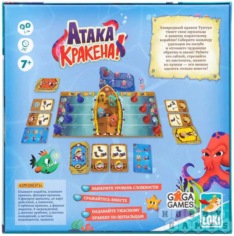 "Атака Кракена" – отличная кооперативная игра для всей семьи с несложными правилами, красочными иллюстрациями и пиратскими приключениями.