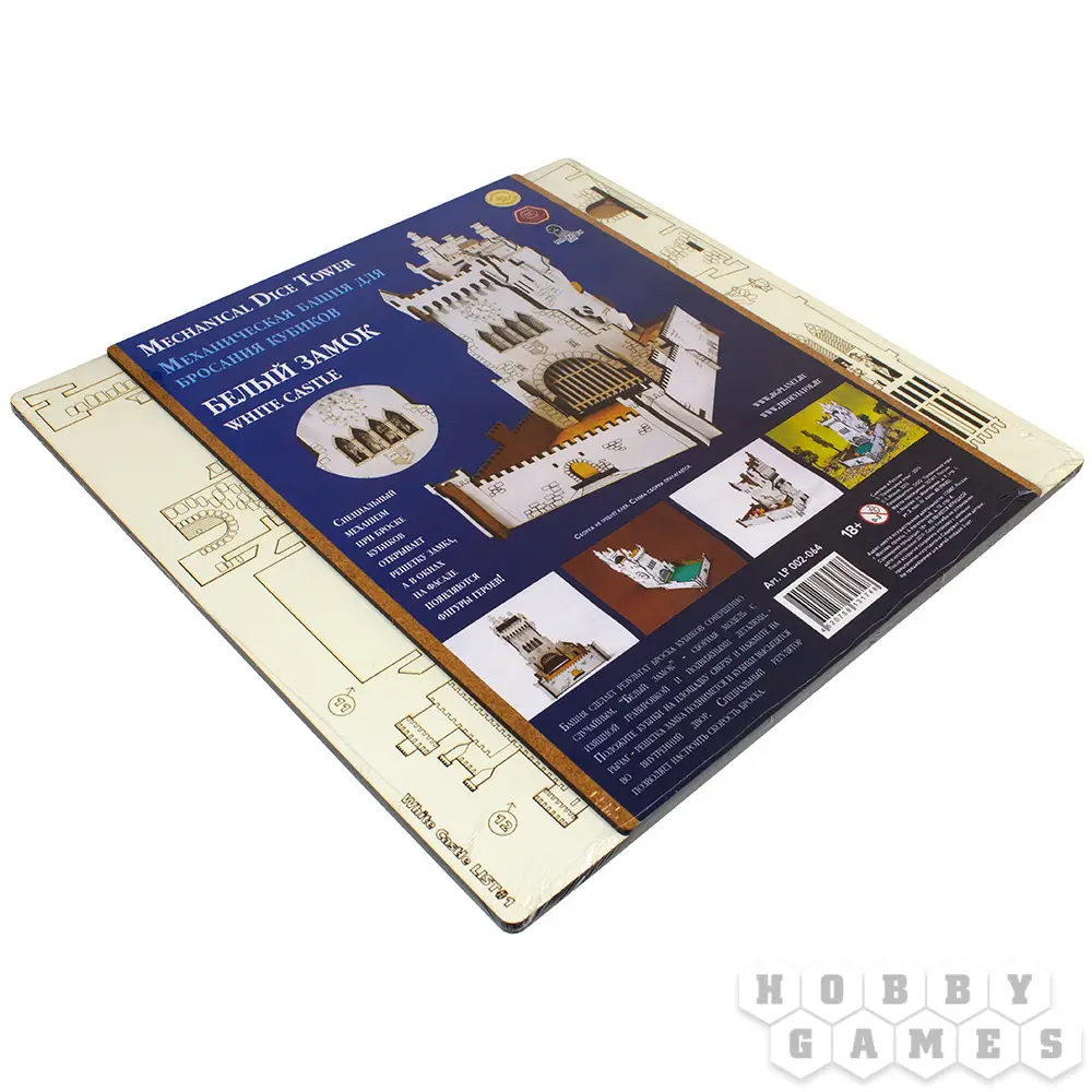 Перед вами механическая башня "Белый замок", которая сделает результат броска кубиков абсолютно случайным. Положите кубики на площадку сверху и нажмите на рычаг – массивная решётка замка поднимется, а ваши кубики высыпятся во внутренний двор. В это время из окон замка за вашим результатом наблюдают король с королевой, трубадур и рыцарь. Также на балконе замка можно разместить собственные миниатюры персонажей или, например, кубики или жетоны, а с помощью регулятора механизма можно выбрать скорость броска.