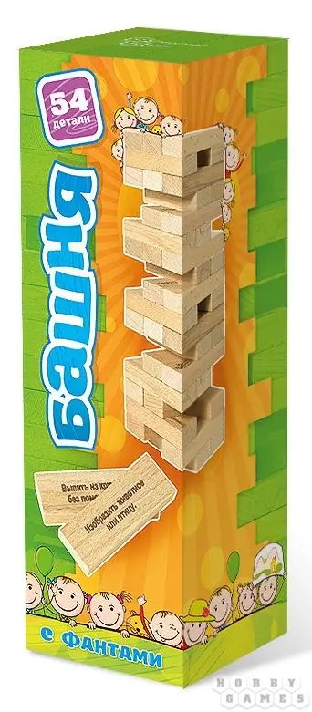 Башня с заданиями для детей — это настольная игра, в которой нужно выстраивать башню из деревянных брусков, вынимая бруски с нижних "этажей" и докладывая их наверх.