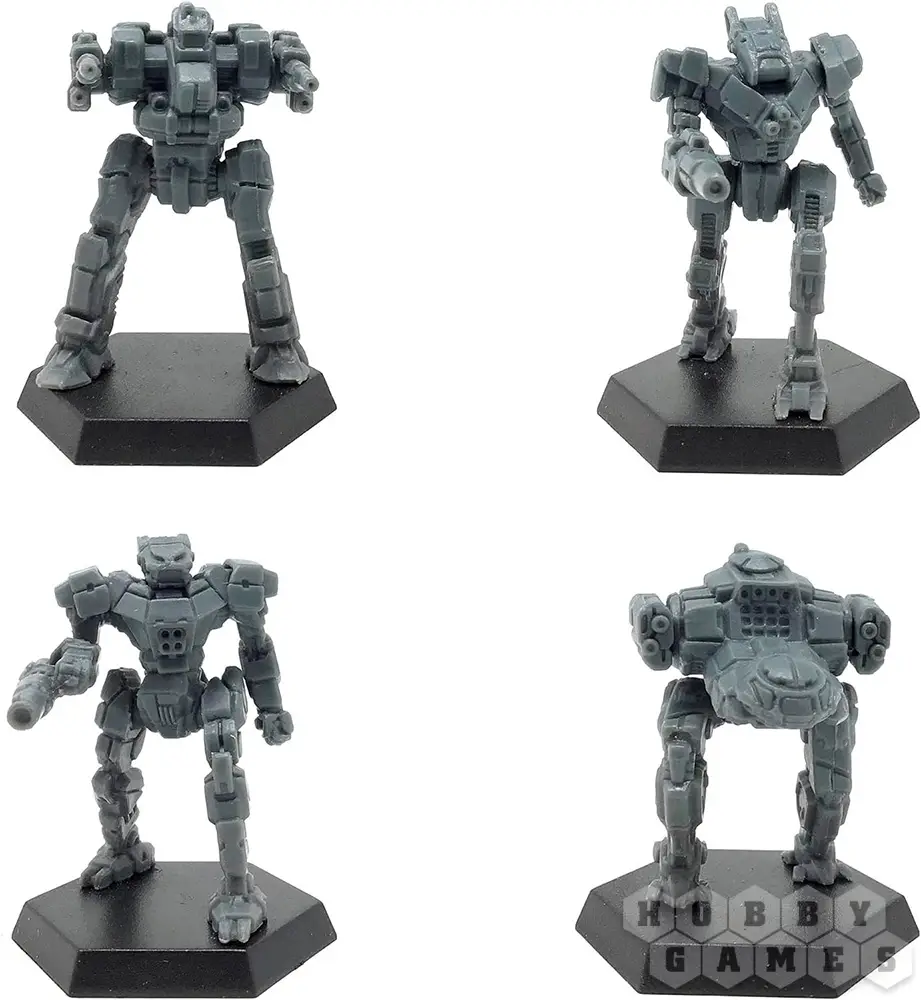 Каждый набор Inner Sphere ForcePack включает в себя четыре высококачественных, полностью собранных боевых меха, а также четыре карты "Альфа-удар" и четыре карты пилотов.