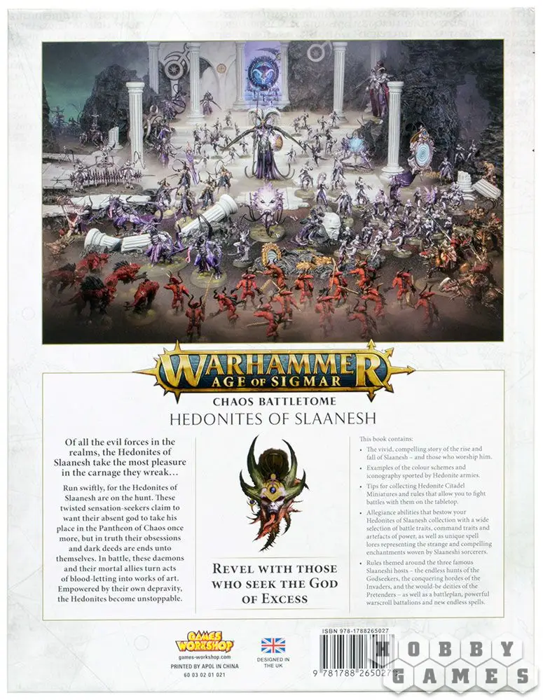 Слаанеш заключён в клетку, но с этим боевым томом вы сможете овладеть его силой! Эта 96-страничная книга в твёрдом переплёте является полным путеводителем по армиям Тёмного Принца. Вы откроете для себя тёмные истории, которые прольют свет на Слаанеш – Бога Хаоса, который больше всего любит изобилие и удовольствие. От неумолимых искателей до претендентов узурпаторов – эта книга воплощает в жизнь фантастические детали самых зловещих уголков Владений Смертных. Она наполнена потрясающими новыми иллюстрациями, знаниями и намёками на то, что ожидает последователей и самого Тёмного Принца в дальнейшем. Благодаря информации из этой книги вы сможете выставить армию Слаанеш на поле боя: батальоны, боевые свитки, заклинания, особые способности и многое другое. Демоны и смертные слуги Слаанеш объединились в единую силу. Книга также содержит рекомендации по покраске миниатюр, примеры цветовых схем и варианты развития армии для кампании Путь к Славе (Path to Glory).