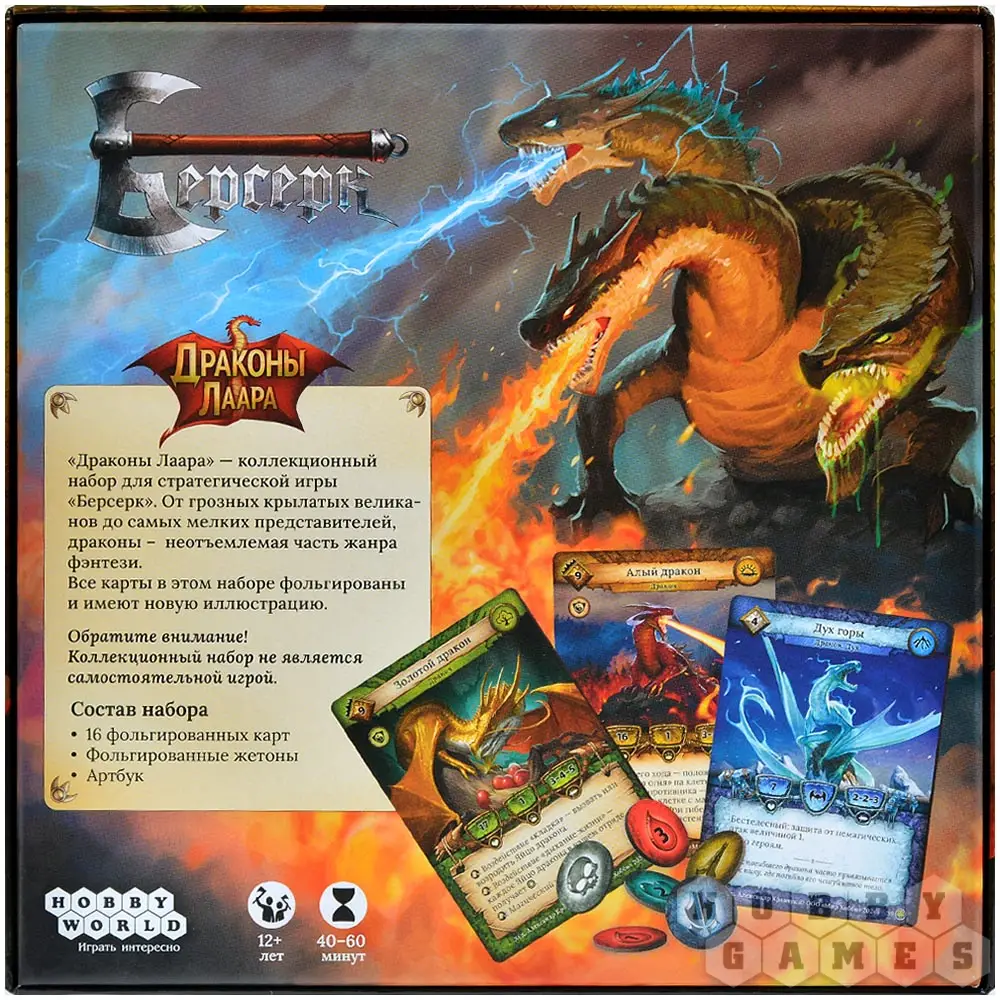 Да, вы всё верно прочитали. "Берсерк: Драконы Лаара" включает в себя фойловых драконов, которых вы уже встречали в выпусках "Нашествие тьмы", "Война стихий" а также "Семена раздора", в количестве шестнадцати штук! Карты приобрели совершенно новые изображения, выдержанные в одном стиле, за авторством художника Александра Кравчука. Карты данного набора полностью легальны на любых турнирах, так что теперь ваша колода будет в буквальном смысле блистать на столе!