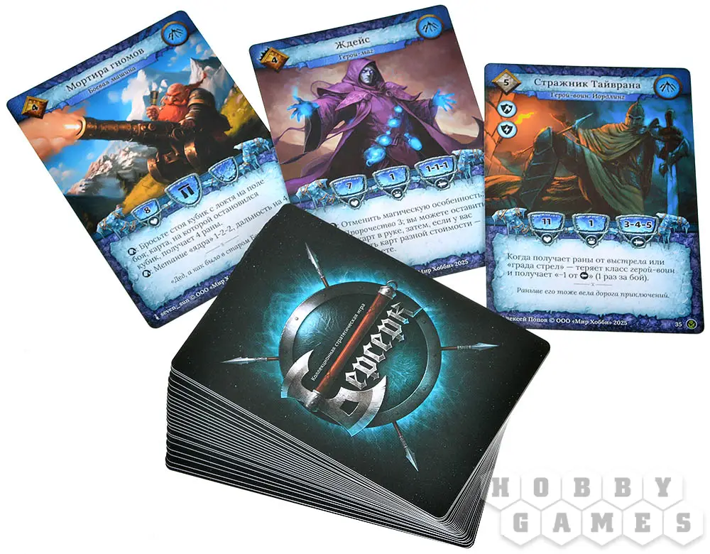 "Берсерк" – это дуэльная карточная игра, в которой вы будете командовать могучими воинами, овладевать силой стихий и соревноваться в тактическом мастерстве. Каждый игрок обладает собственной колодой – она содержит от 30 до 50 карт. Вы можете как воспользоваться готовой колодой из стартового набора, так и создать собственную с помощью бустеров.