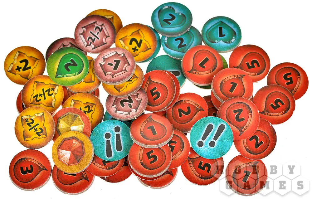 Размер карт: 63x88 мм (рекомендуются протекторы из данного раздела, 64 шт.)