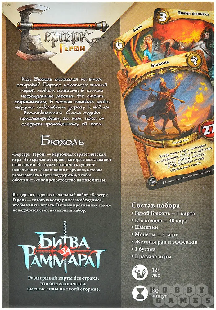 В новом выпуске "Берсерк. Герои" вас ждёт мир, где переплелись мощи классического фэнтези и утончённость азиатской культуры. Выберите своего героя среди трёх мощных стартовых наборов: приручите големов-марионеток и их загадочного кукловода, испытайте неудержимую силу тролля-сумоиста или встаньте на путь искателя знаний из ордена Тоа-Дан. Углубите знакомство с полюбившимися механиками: "Душелов", "Набег" и "Расход" раскроются по-новому – хватит ли вам смекалки, чтобы потратить за ход все 20 монет? А если повезёт, вы и вовсе получите огромное преимущество – некоторые карты будут работать прямиком из вашей руки, даже не требуя розыгрыша!