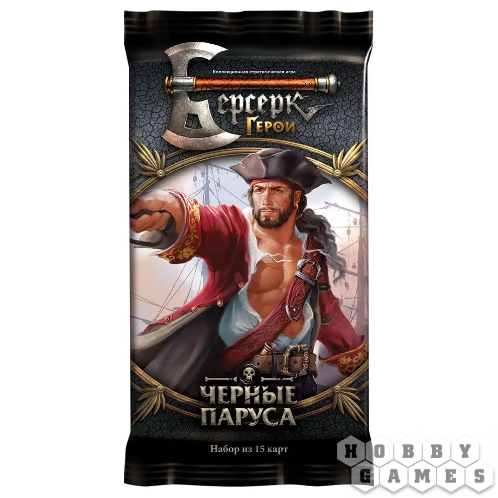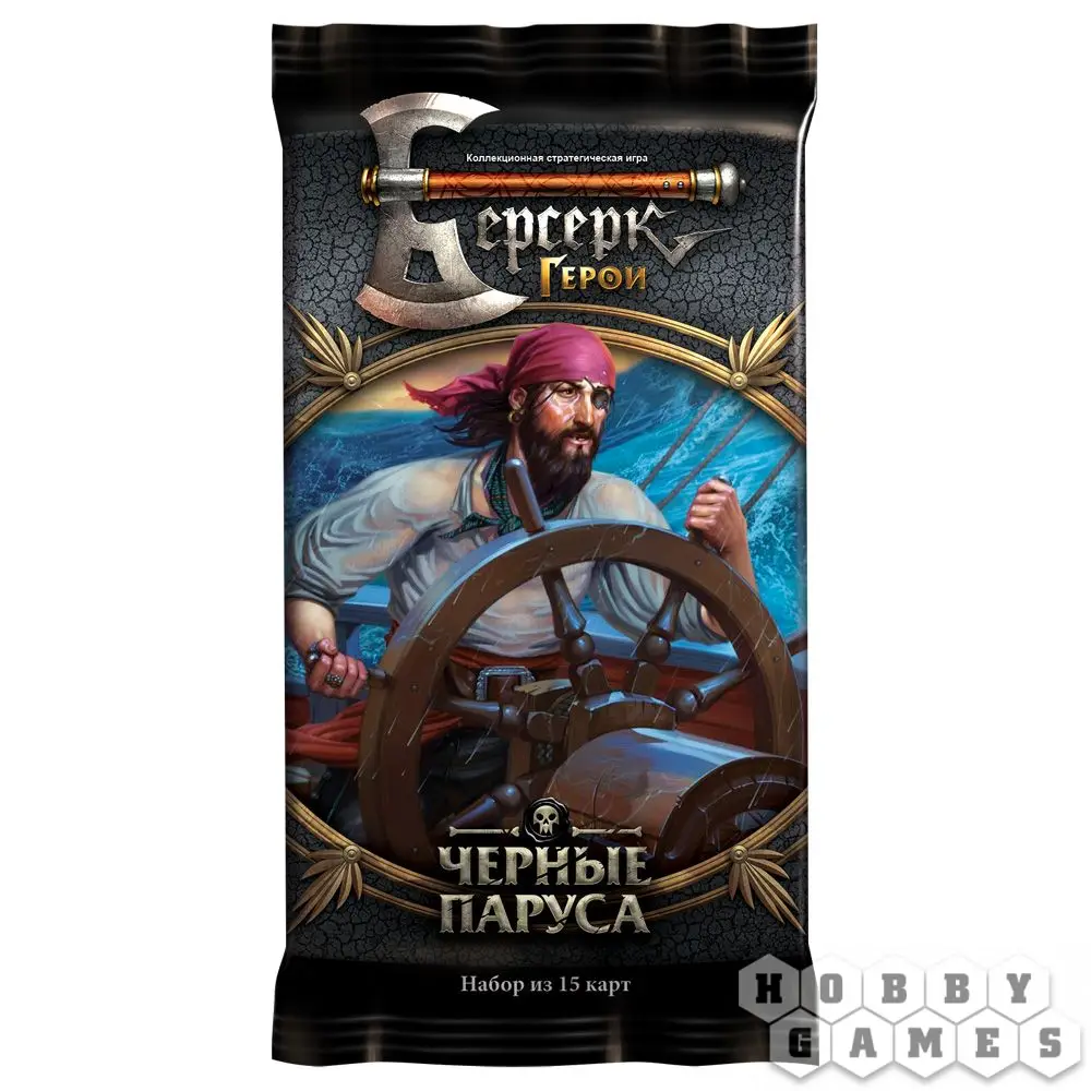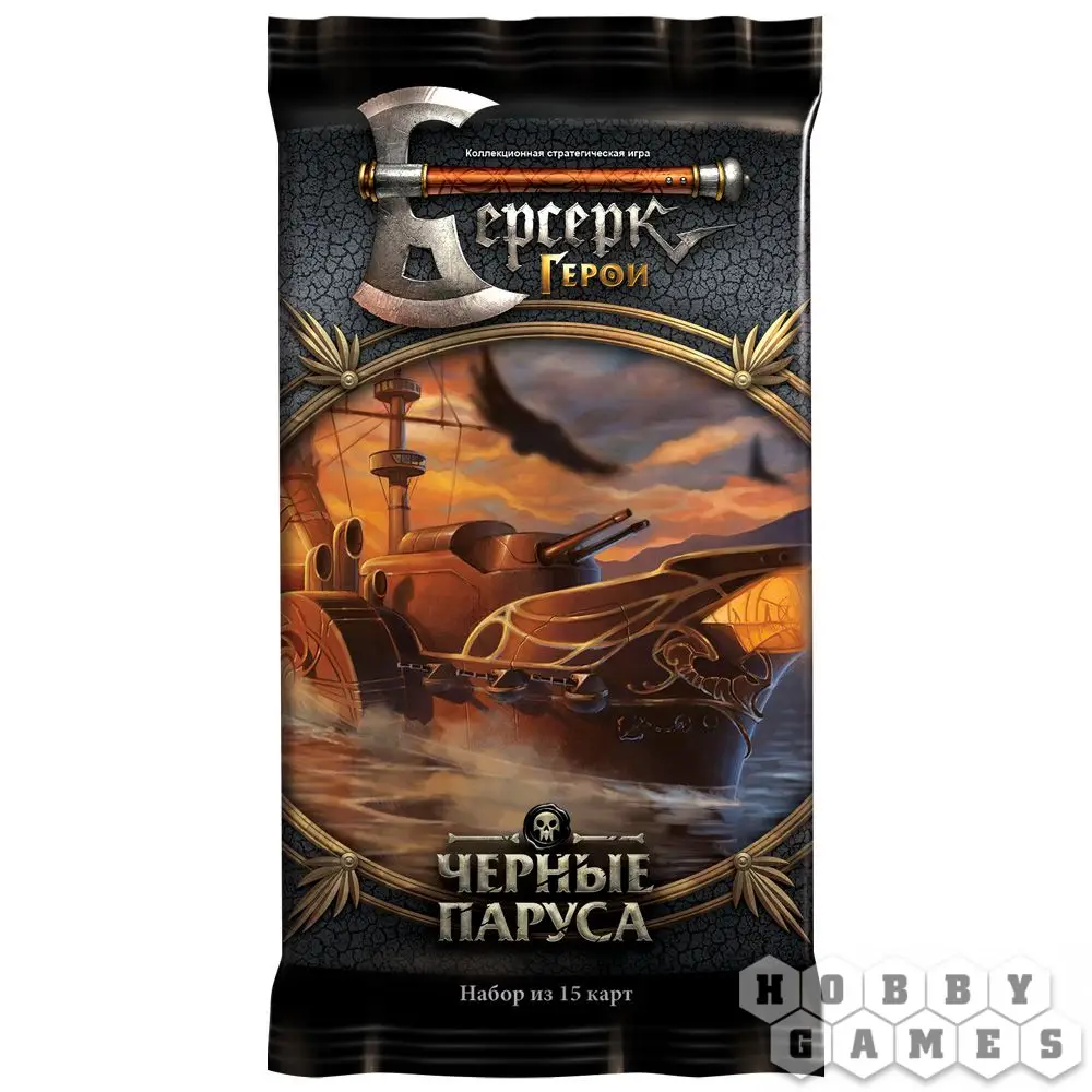 Бустер выпуска "Чёрные паруса" коллекционной карточной игры "Берсерк.Герои" содержит пятнадцать карт и открывает перед игроками удивительный мир технофэнтези пиратства.