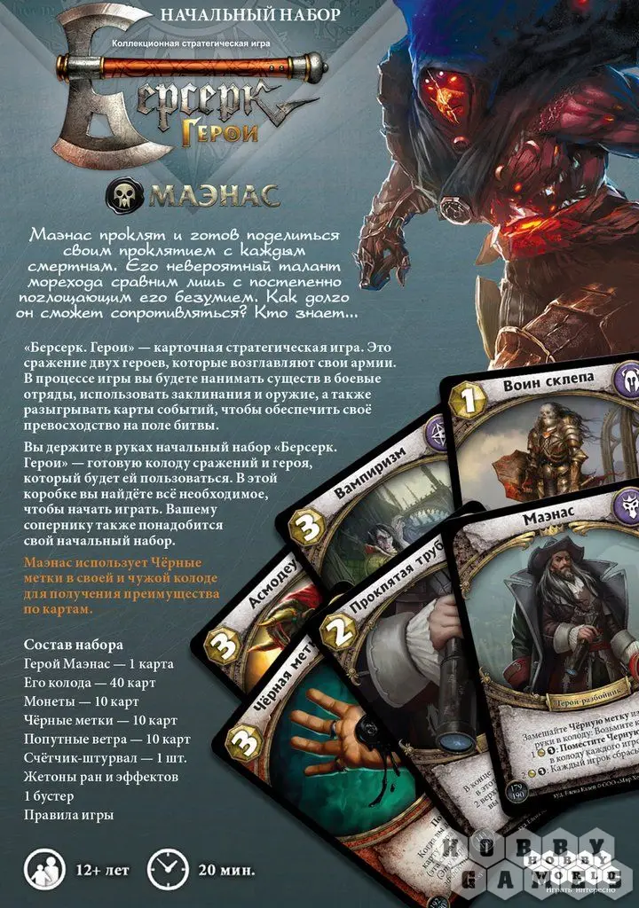 Перед вами один из пяти стартовых наборов нового сета "Чёрные паруса" для коллекционной карточной игры "Берсерк. Герои". Этот набор содержит одного уникального героя сета, полностью готовую к игре колоду, а также один бустер данного сета для усиления колоды. Чтобы начать игру, вашему сопернику также потребуется либо начальный набор, либо уже собранная игровая колода.