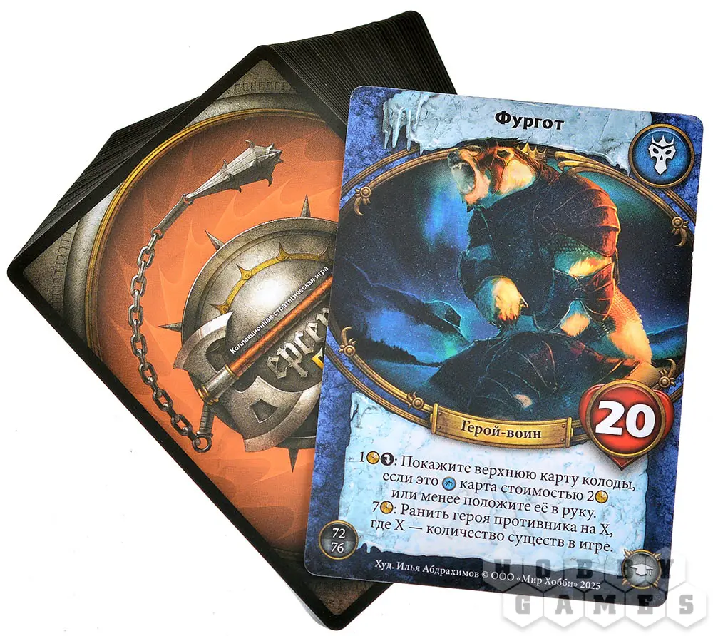 Размер карт: 63x88 мм (рекомендуются протекторы из данного раздела, 42 шт.)