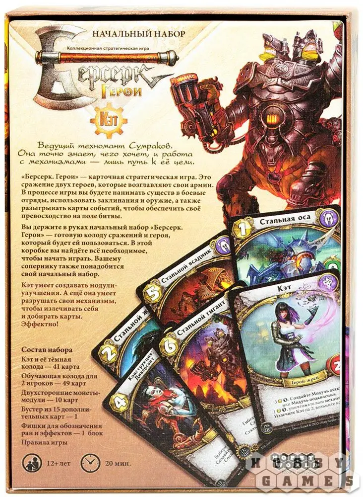 Набор представляет собой стартовый комплект для новичков мира "Берсерк. Герои". Это готовая колода и герой, который ей пользуется. Для игры вдвоём необходим второй стартовый комплект.