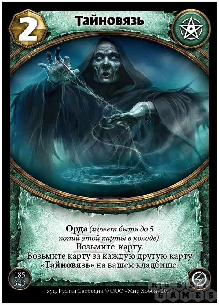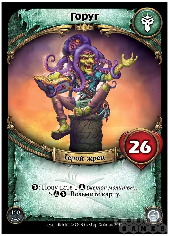 Герой Горуг возносит молитвы своему богу Уорлогу и получает с их помощью дополнительные карты.