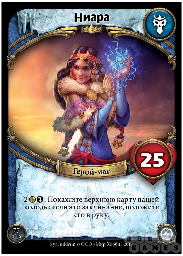 Герой Ниара работает с заклинаниями своей колоды и предсказанием будущего.